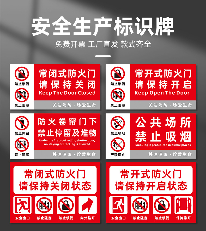 안전 식별 스티커 일반적으로 폐쇄 된 방화문 화재 방지 시설 표지판 일반적으로 개방 표지판