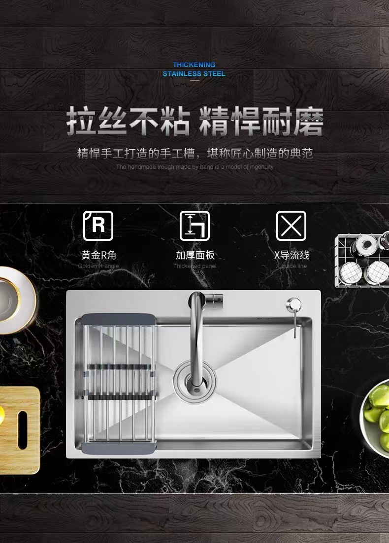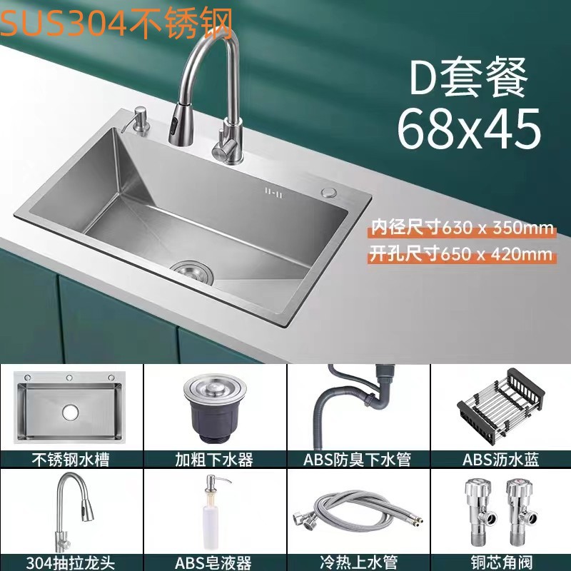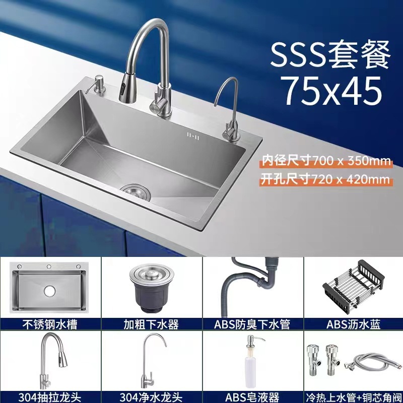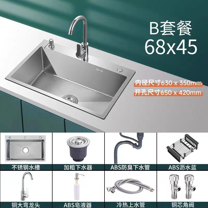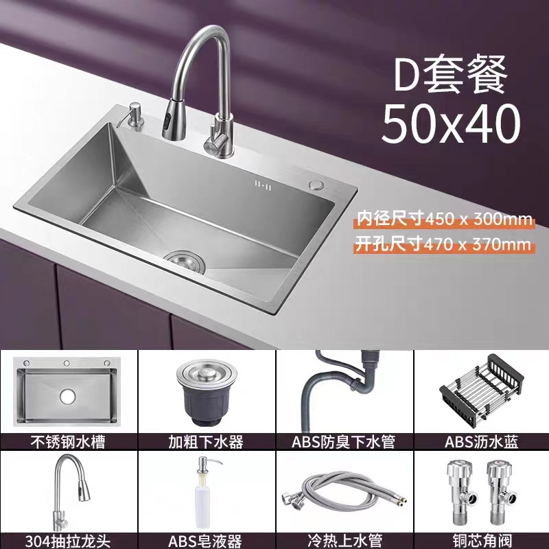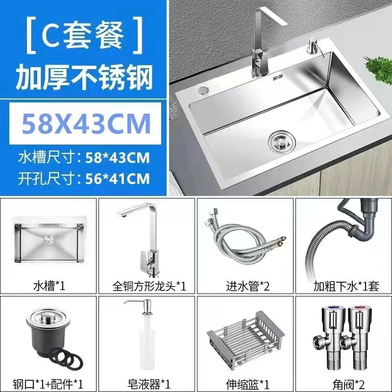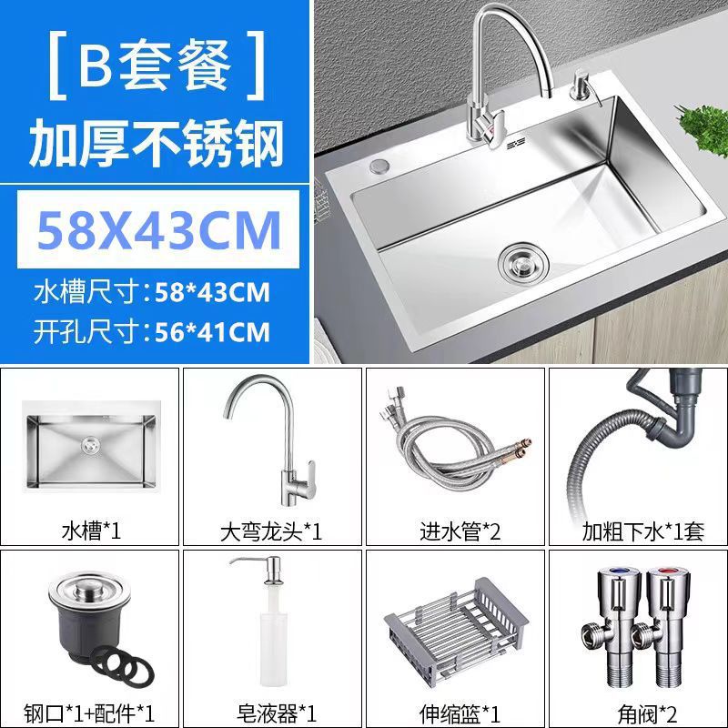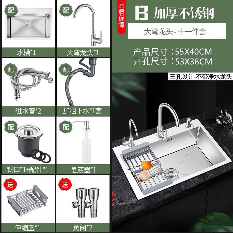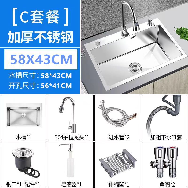 가정용 수제 세척 싱크대 두꺼운 싱크 세척 싱크대를 닦은 단일 싱크대 304 스테인레스 스틸 언더 카운터 분지 주방 싱크대스토어 가기
