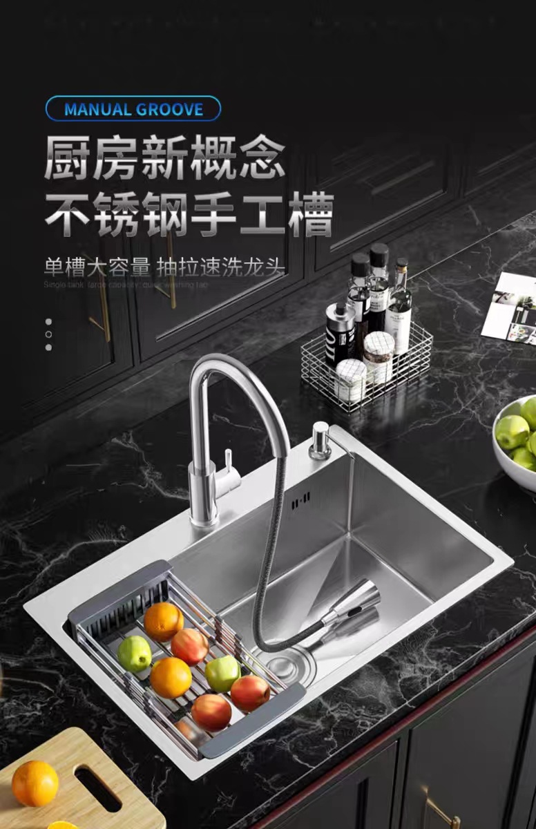 가정용 수제 세척 싱크대 두꺼운 싱크 세척 싱크대를 닦은 단일 싱크대 304 스테인레스 스틸 언더 카운터 분지 주방 싱크대