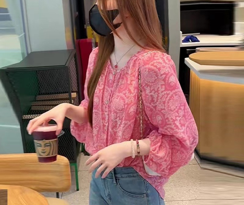 핫 스타일 랜턴 슬리브 긴 소매 쉬폰 탑 여성의 우아한 인쇄 셔츠 2025 봄 새로운 스타일 유행 올 매치스토어 가기