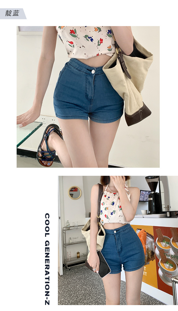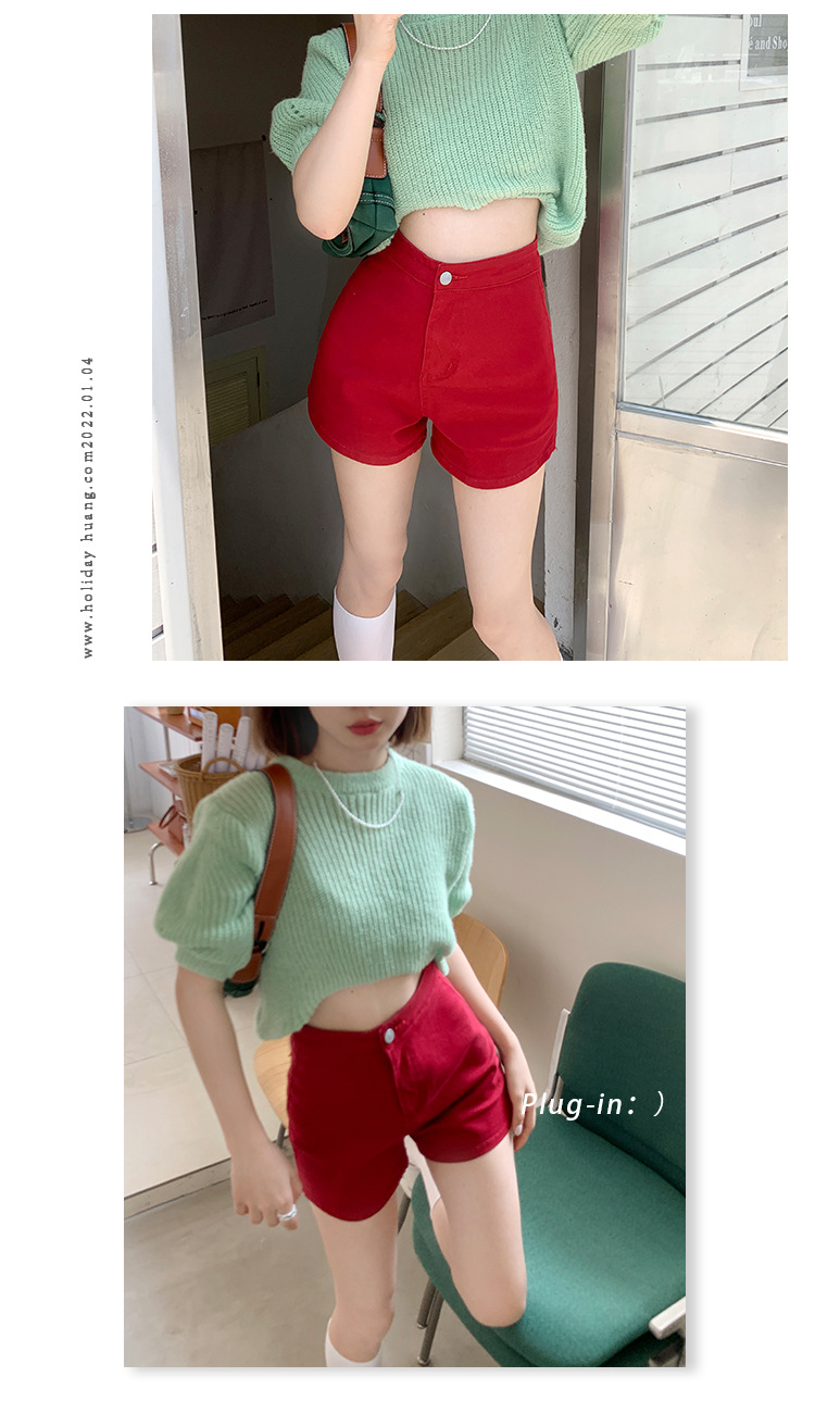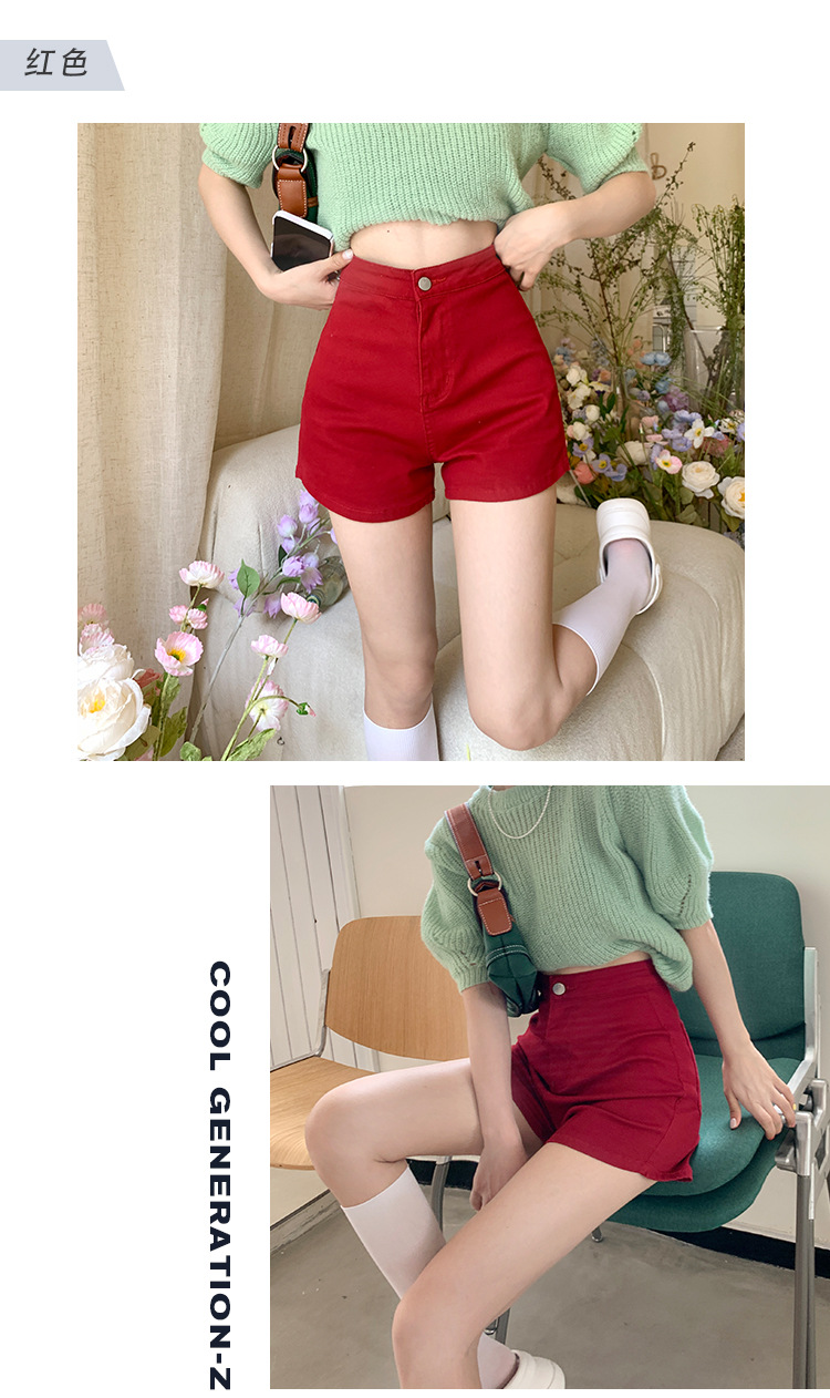 미국 레드 하이 허리 데님 반바지 여성 2025 년 여름 새로운 핫 스타일 스파이스 소녀 타이트한 유행 A-워드 핫 팬츠스토어 가기