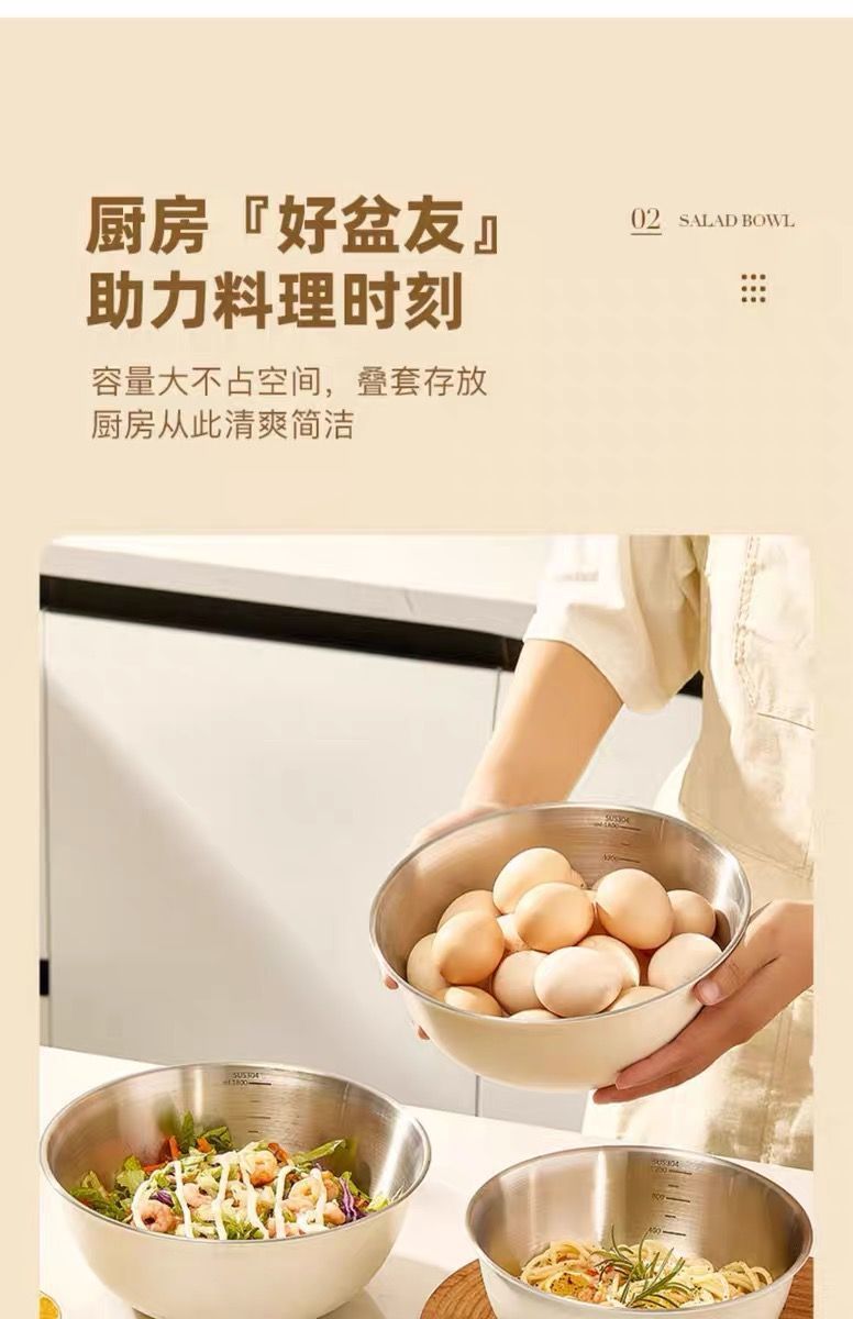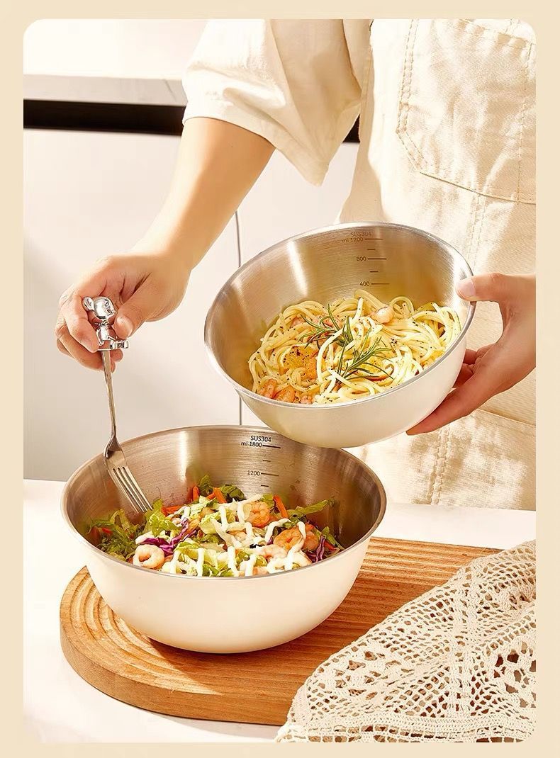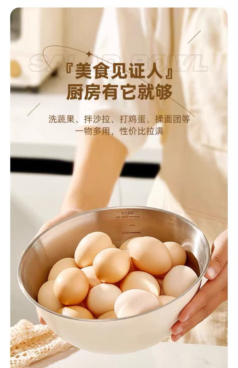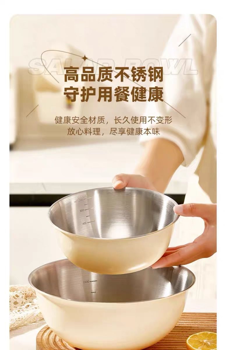 수출 한국 인 두꺼운 스테인레스 스틸 304 살라 보울 미니멀리스트 분지 가정용 주방 계란을 치는 스케일 요리 분지스토어 가기