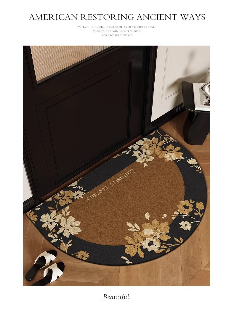 레트로 아메리칸 플라워 컷 테이블 실크 링 플로어 매트 도어 미끄럼 방지 풋 매트 먼지 방지 및 간편한 도어 플로어 매트스토어 가기