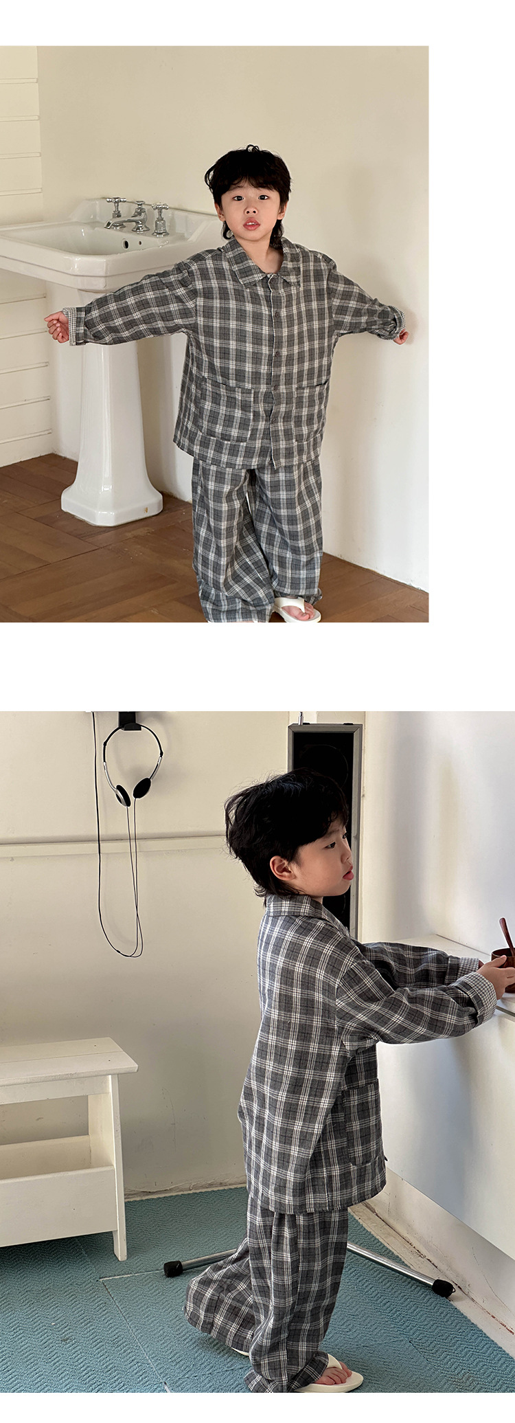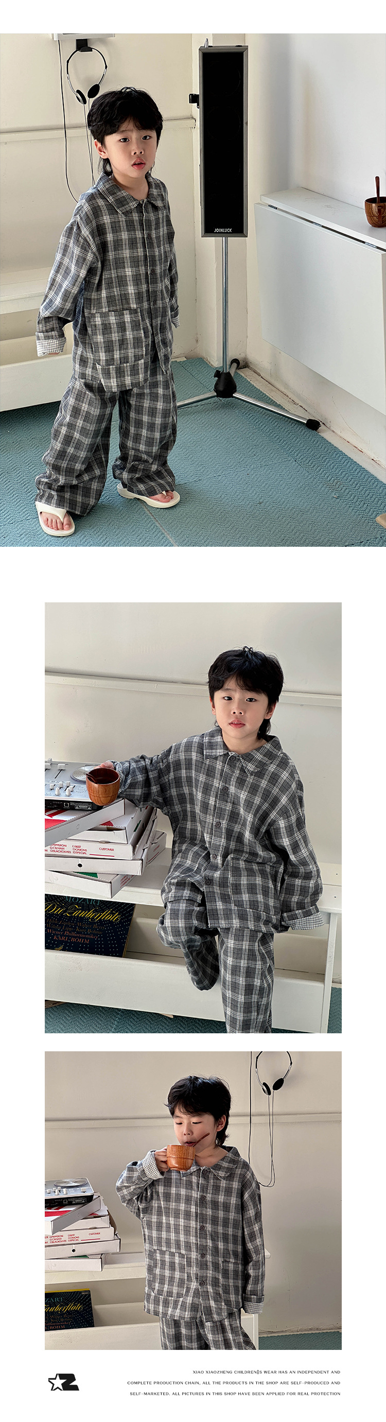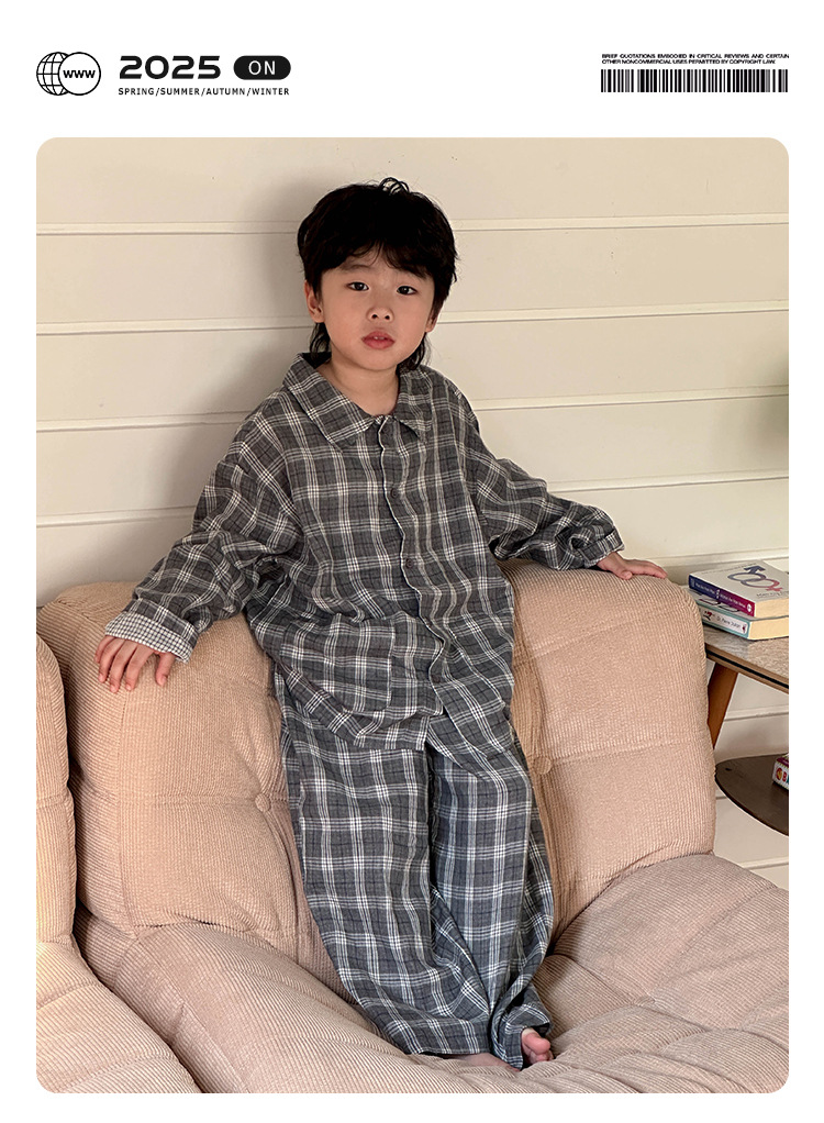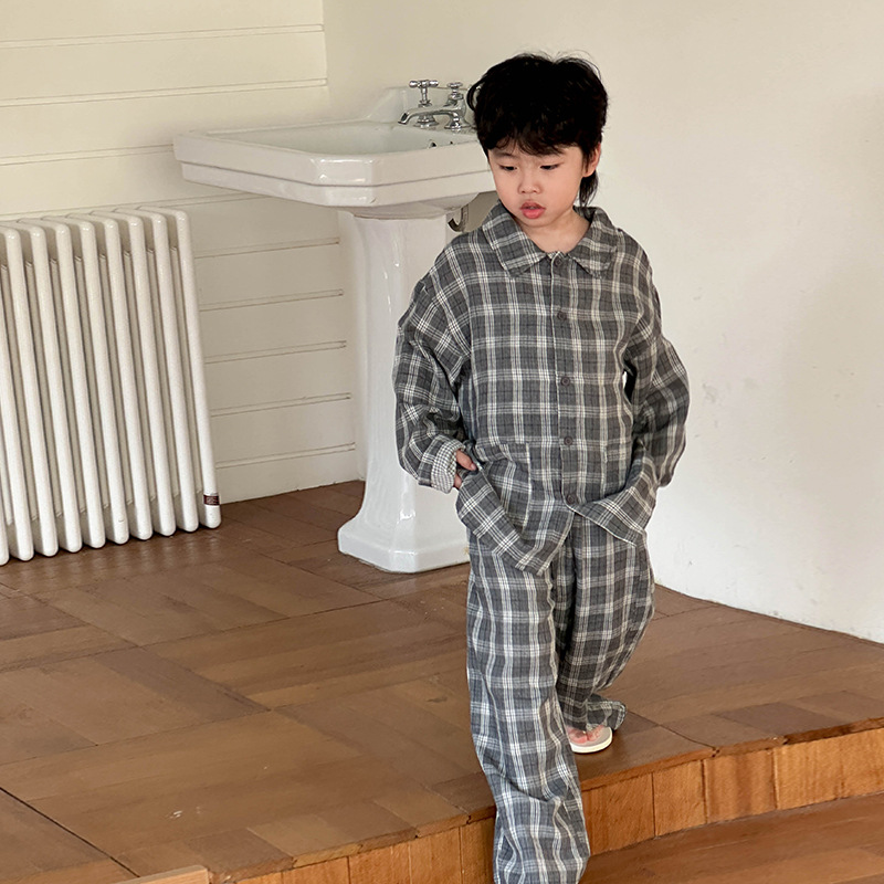 남학생 가정옷 세트 2025 봄 새 어린이 한국 격자 무늬 탑 어린이 캐주얼 바지 투피스 세트스토어 가기