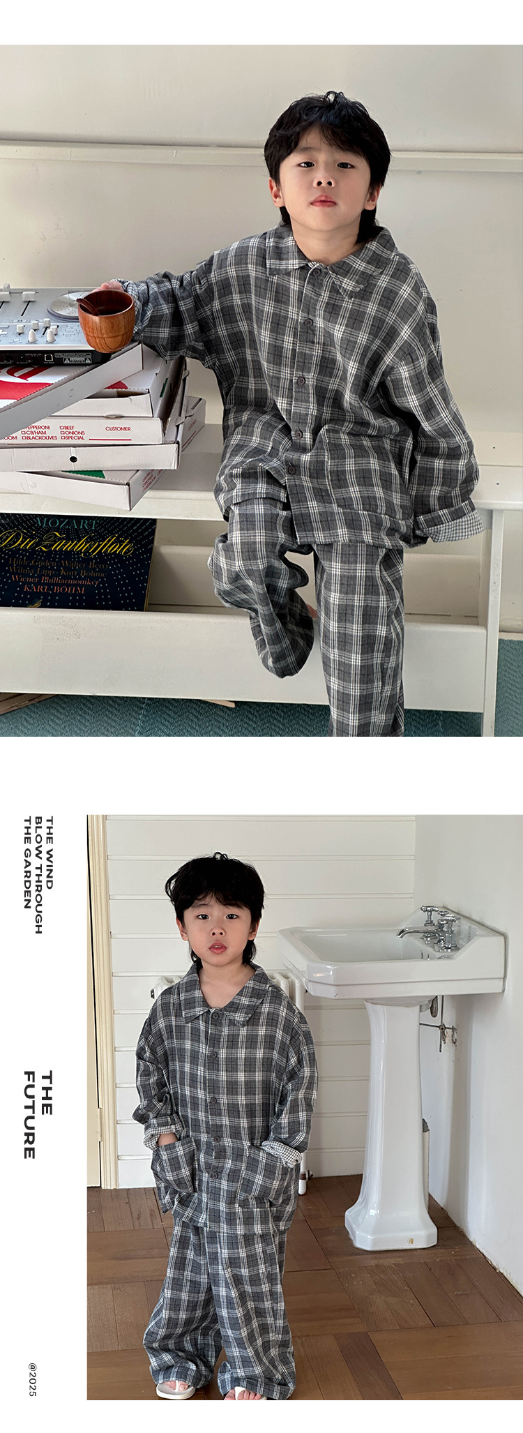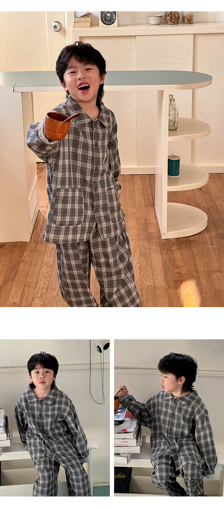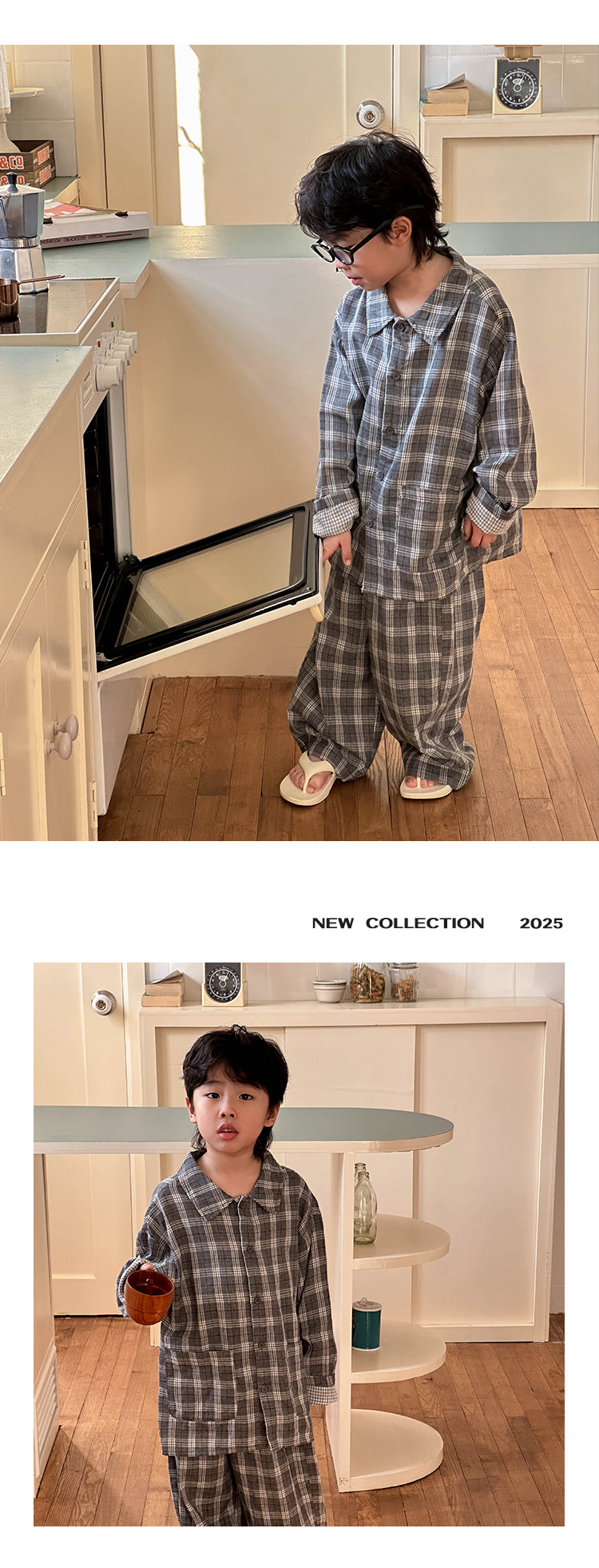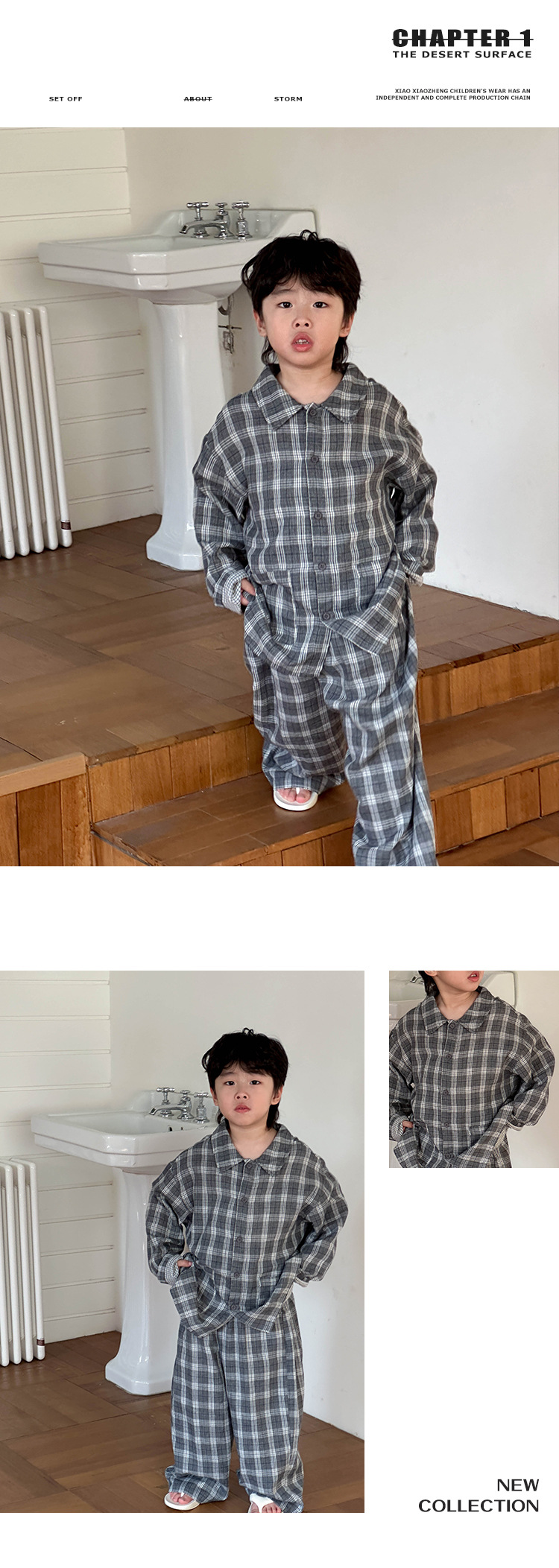 남학생 가정옷 세트 2025 봄 새 어린이 한국 격자 무늬 탑 어린이 캐주얼 바지 투피스 세트스토어 가기