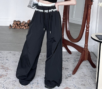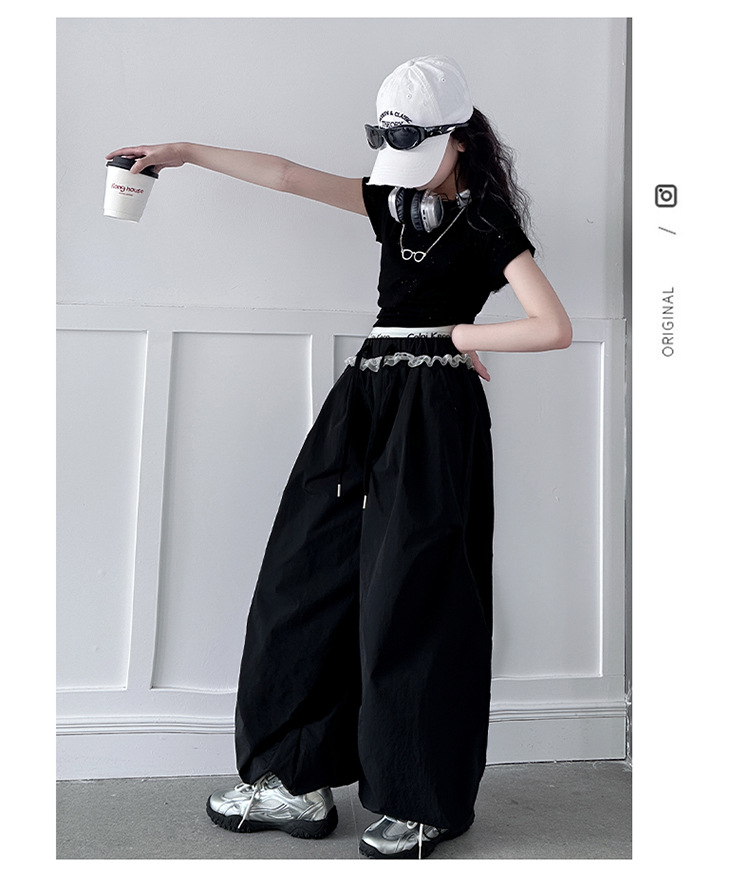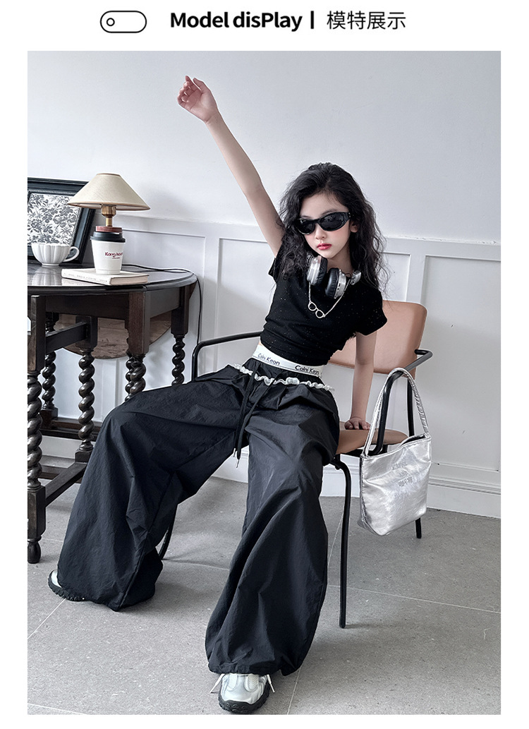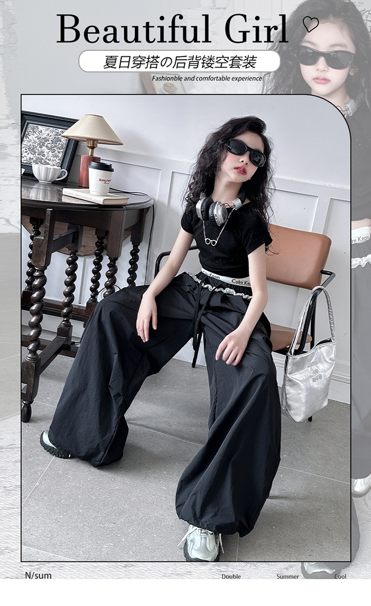 소녀의 여름 반팔 세트 2025 새로운 한국 스타일 소녀의 서양식 레이스 레이스 와이드 레그 바지 투피스 유행 세트스토어 가기