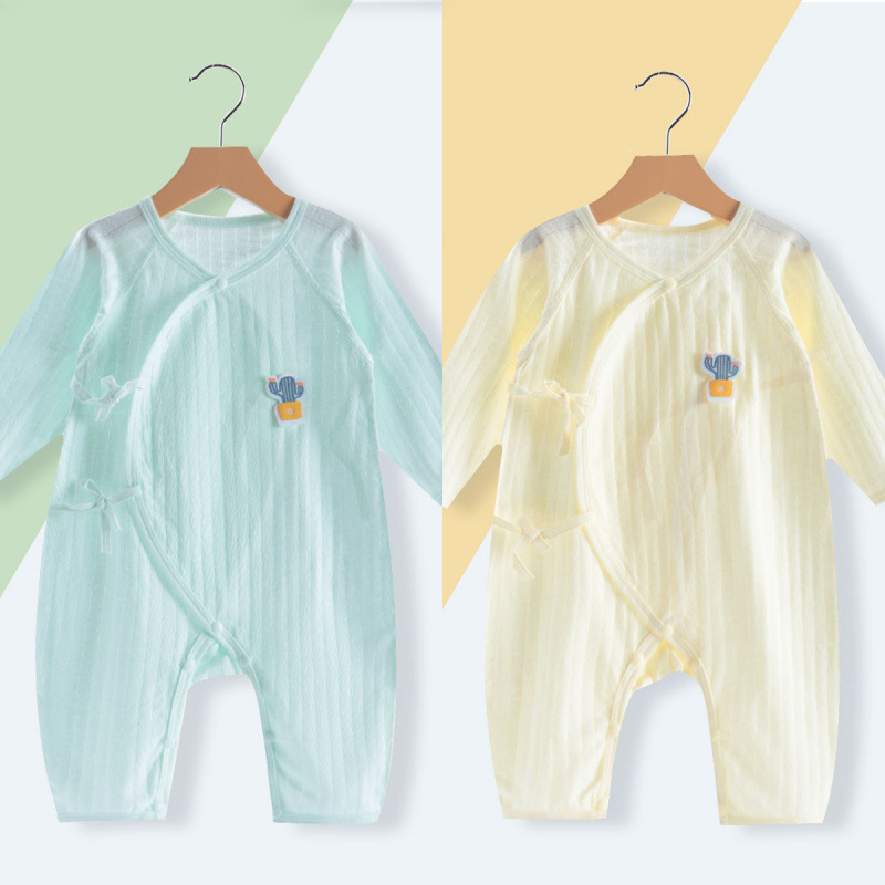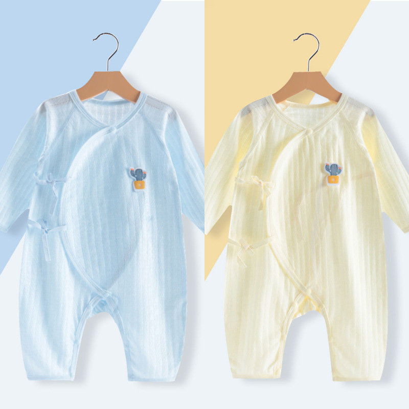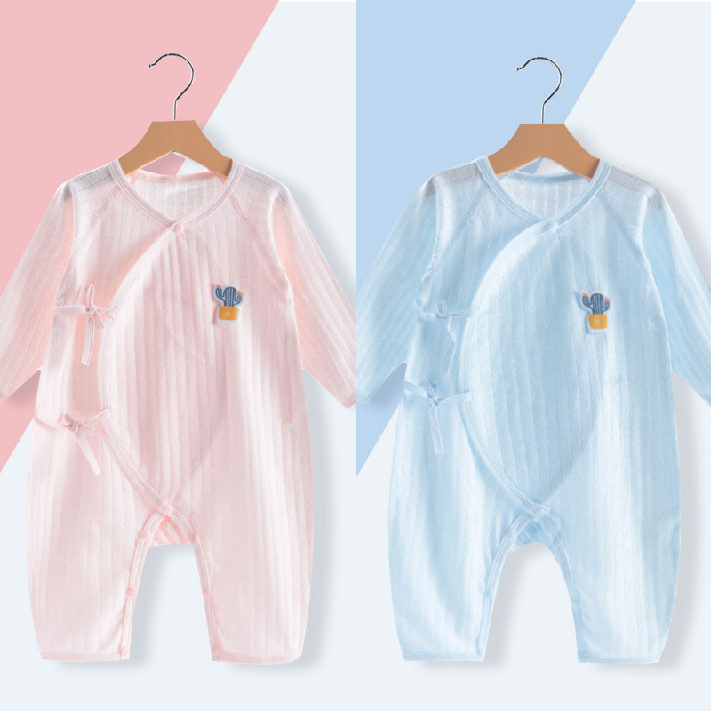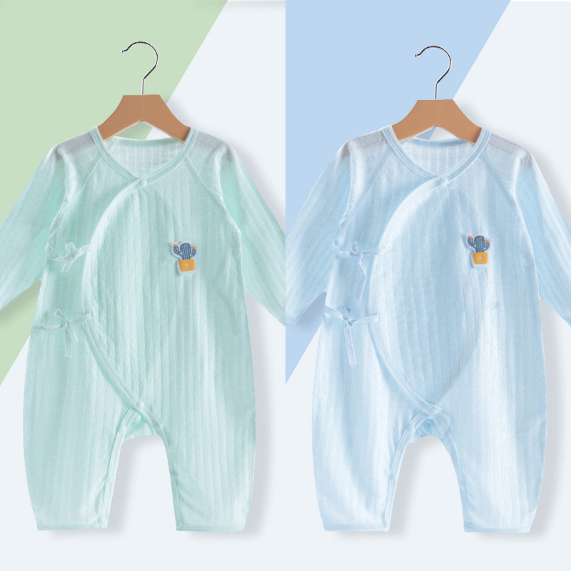 소년 소녀를위한 아기 여름 얇은 올인원 코트 뼈없는 긴팔 에어컨 세트 신생아 옷 순면 나비 코트
