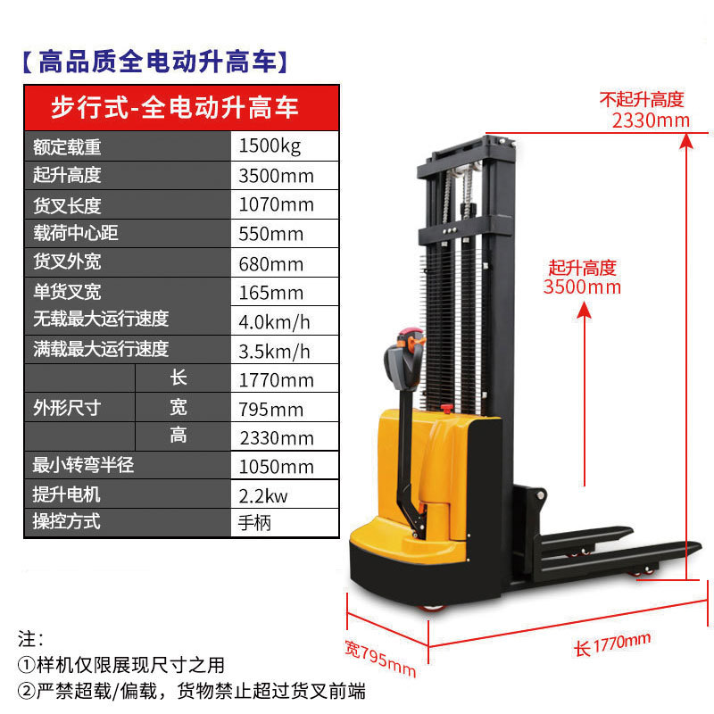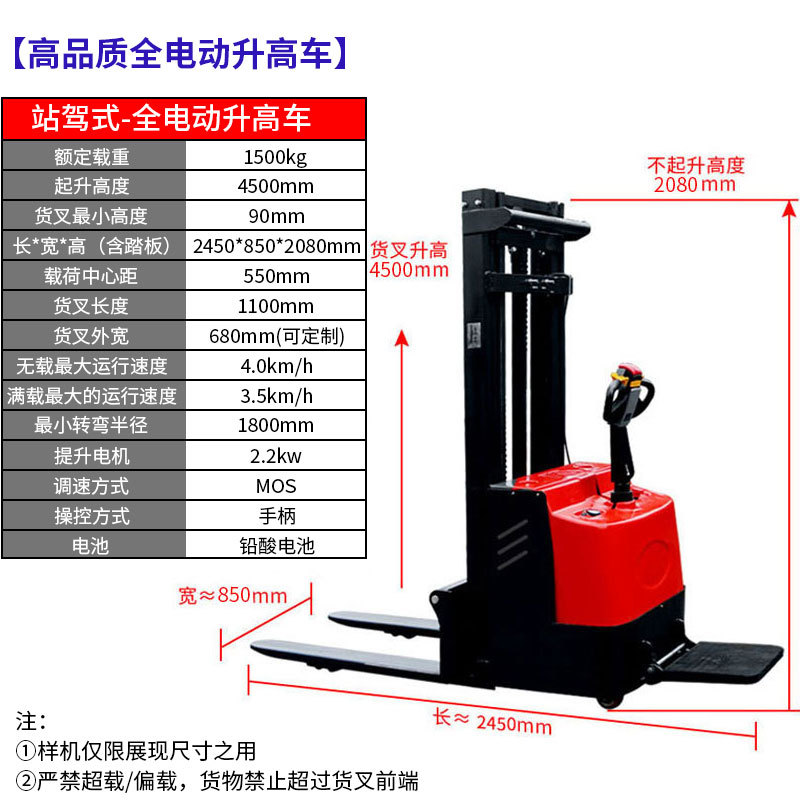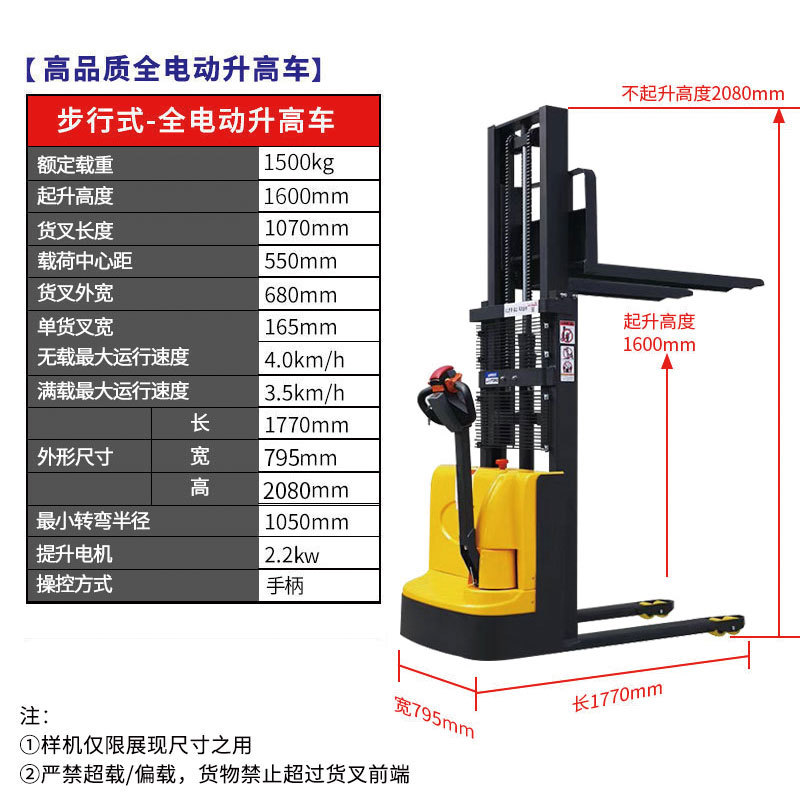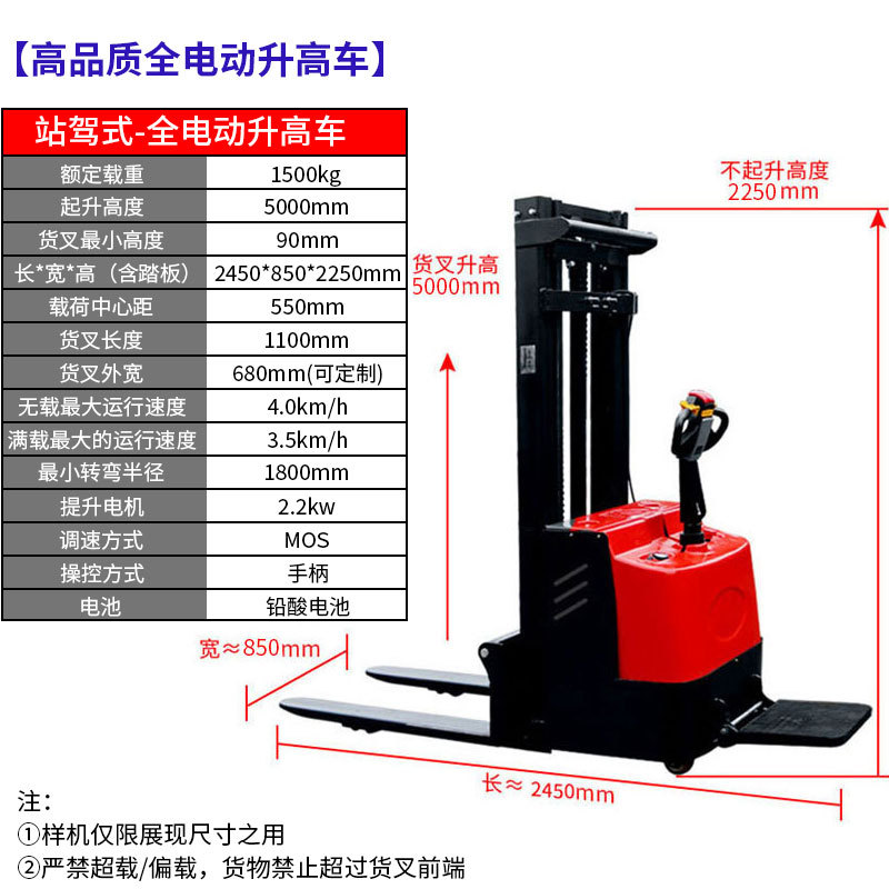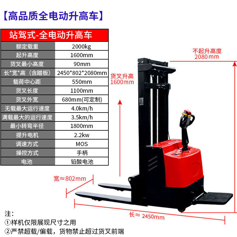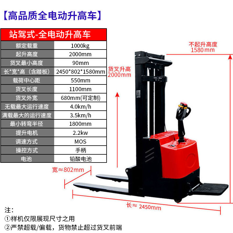 워킹 타입 스테이션 구동 형 완전 전기 지게차 배터리 반 전기 스태커 완전 자동 지게차 여러 사양스토어 가기