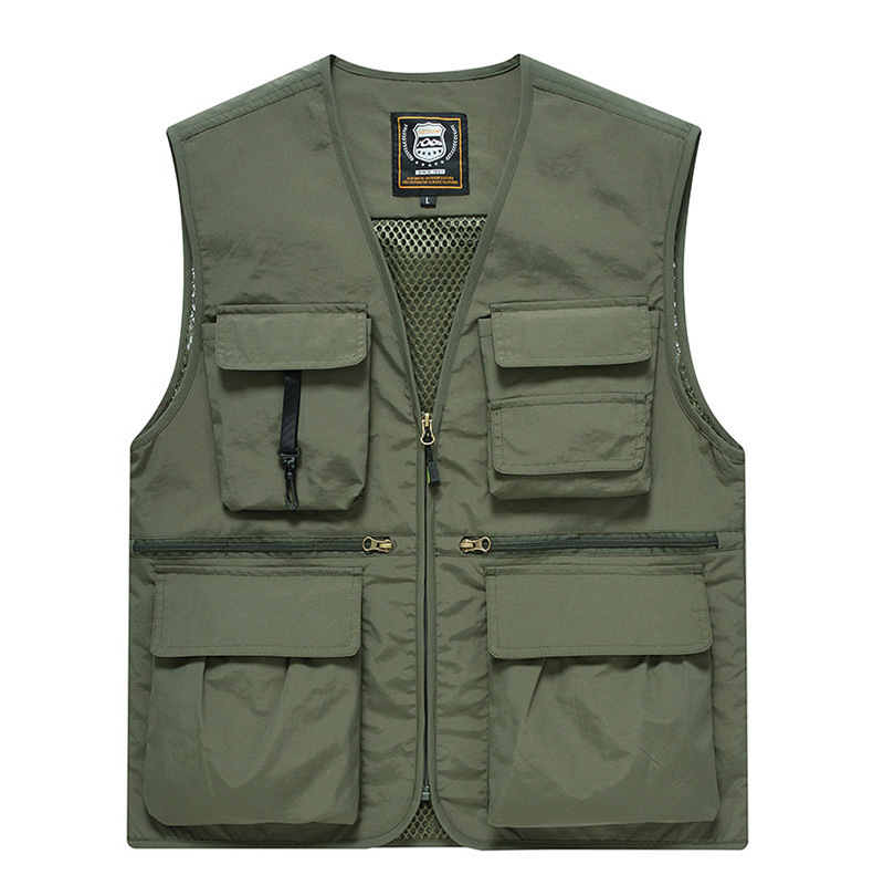 조끼 야외 캐주얼 남성 봄과 여름 얇은 V 넥 조끼 멀티 포켓 사진 툴링 숄더 인쇄 가능한 로고스토어 가기