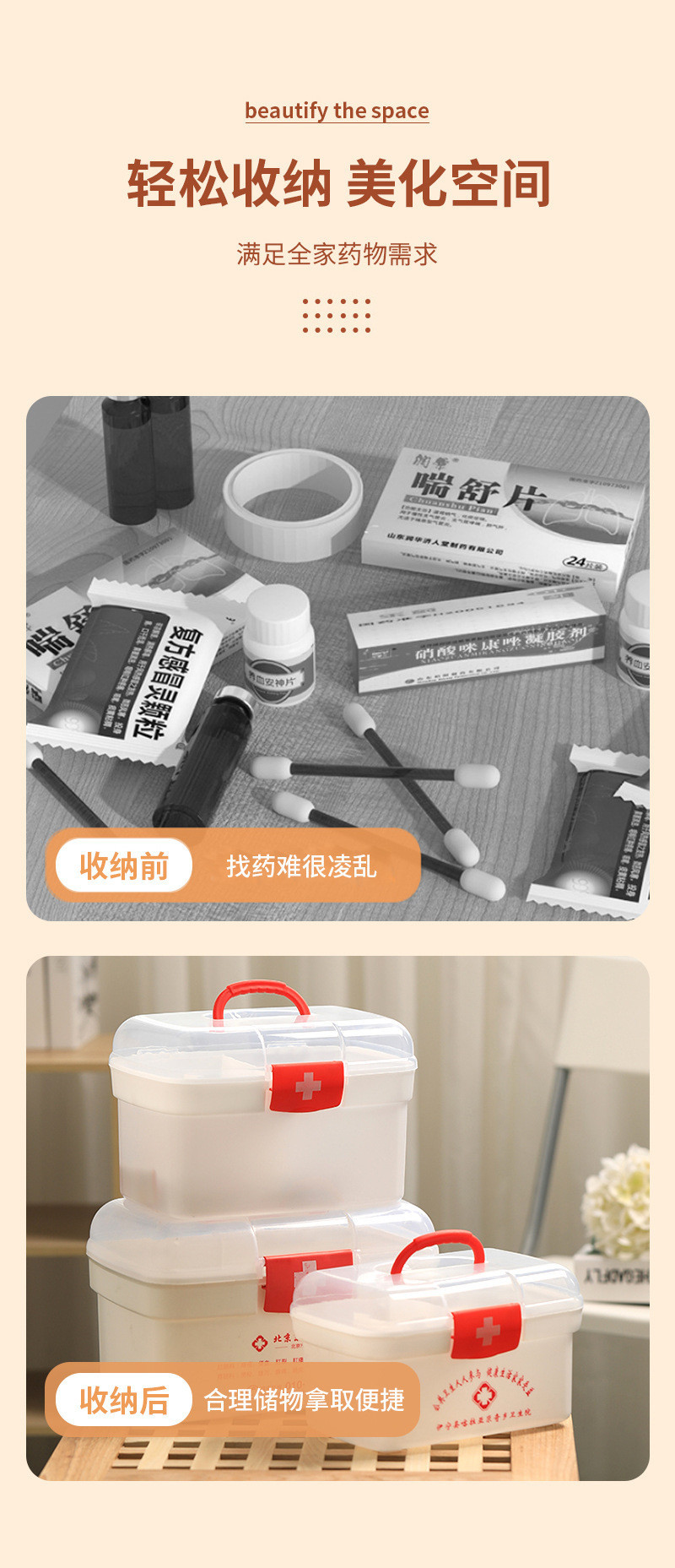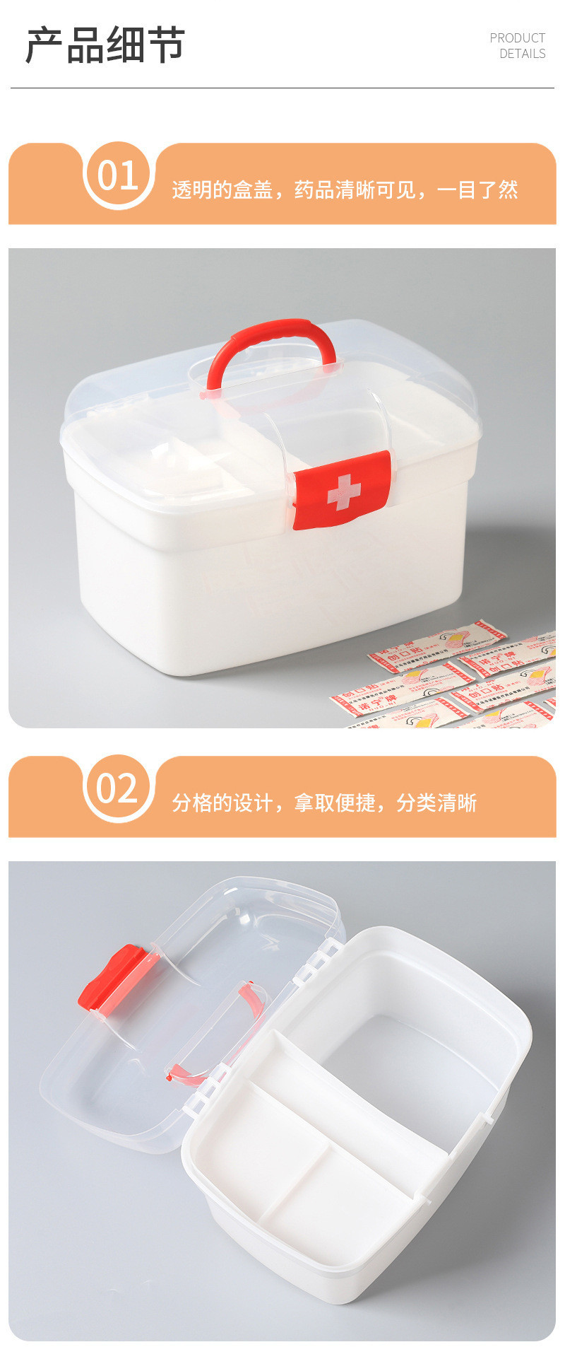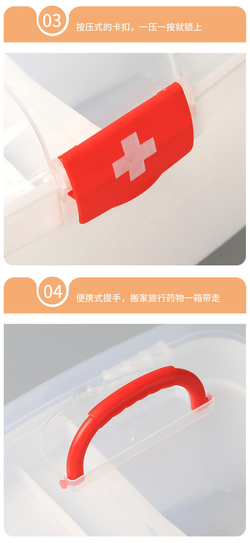 의료 가정용 약물 저장 상자 다층 휴대용 의료 응급 처치 상자 투명 약물 소형