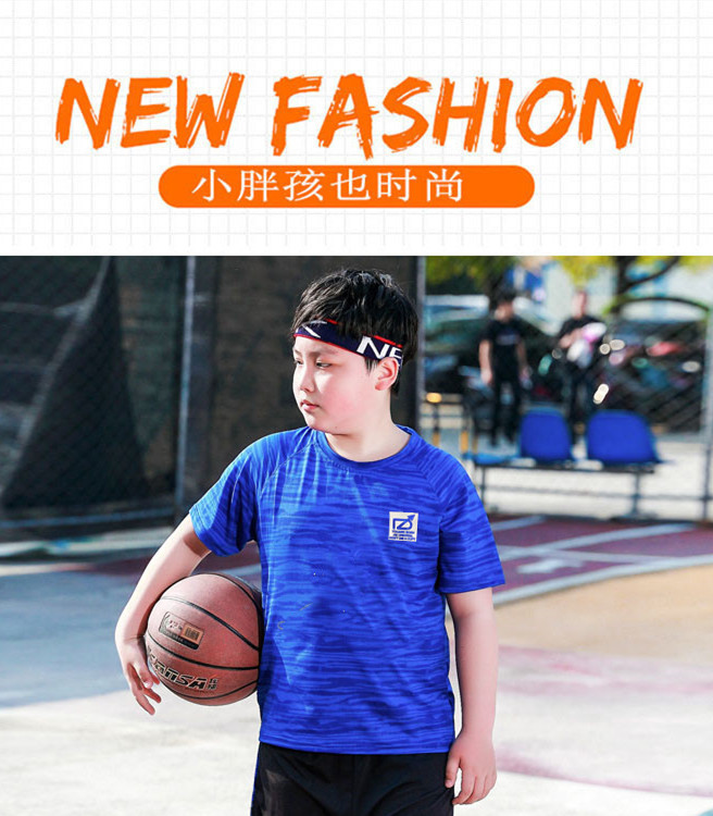 남자 지방 어린이 아이스 실크 탄성 트랙 및 필드 반팔 티셔츠 남자의 여름 느슨한 통기성 빠른 건조 스포츠 캐주얼 탑 트렌디