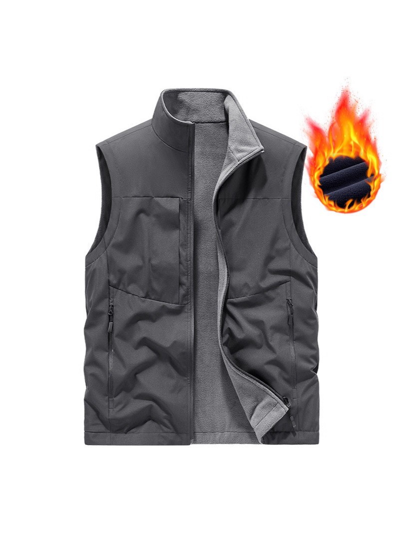 남자 조끼 겨울 기모 멀티 포켓 조끼 중년 아빠 야외 등산 루즈 조끼 후드 재킷 어깨