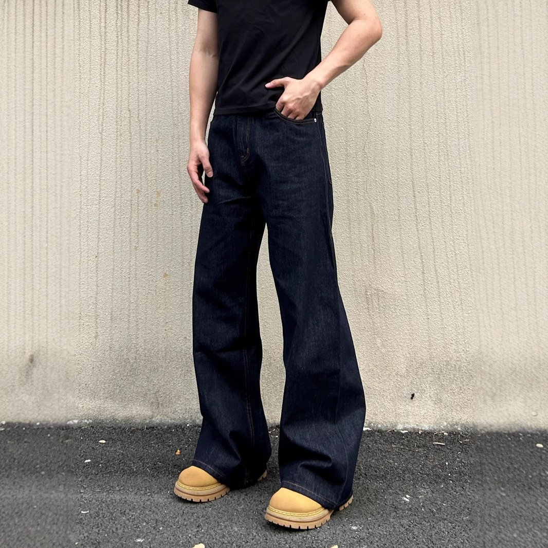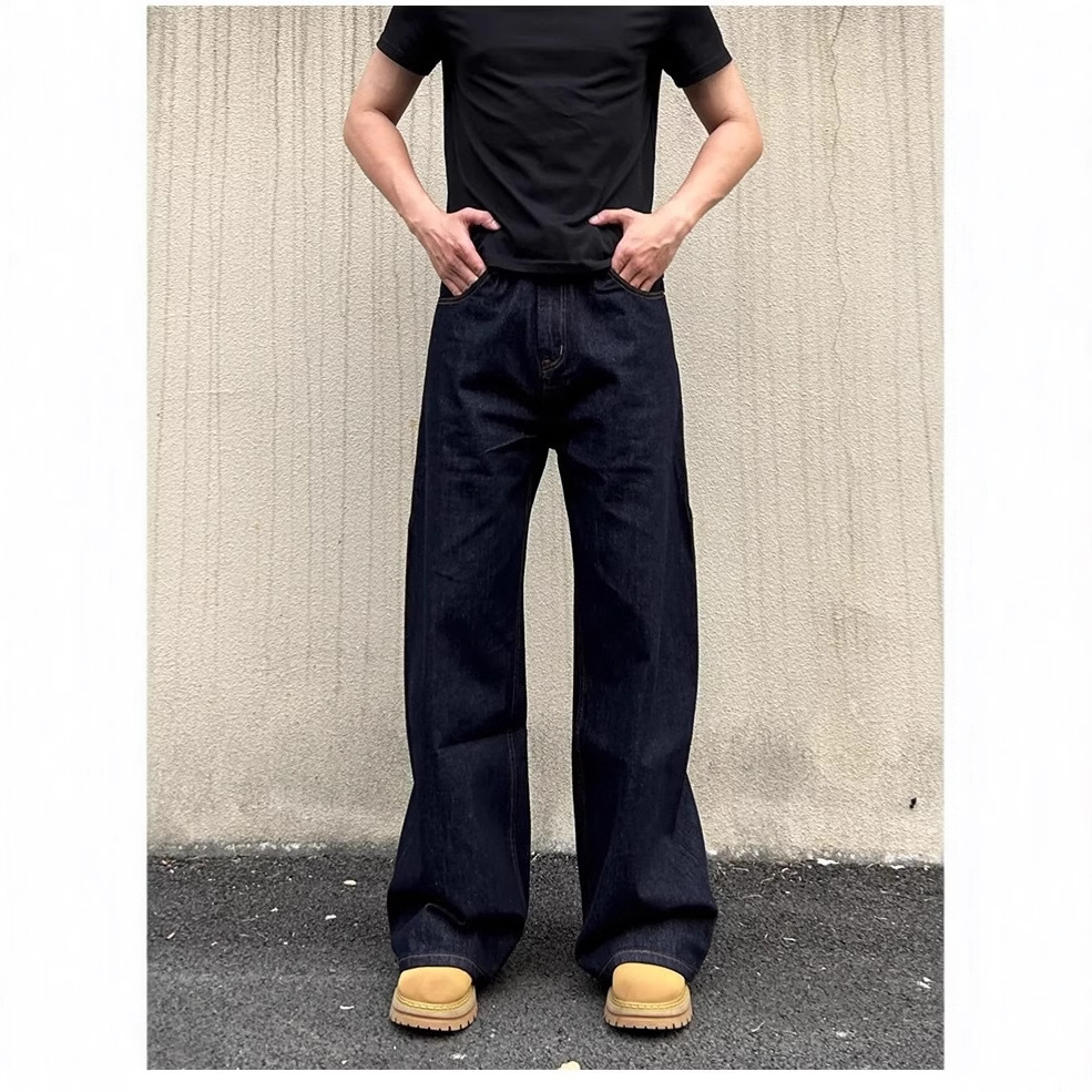 미국식 데님 청바지 남성용 2025 봄 가을 레트로 스트레이트 루즈 캐주얼 약간의 플레어 와이드 팬츠 트렌디 브랜드스토어 가기