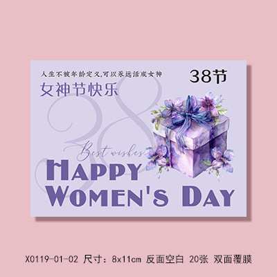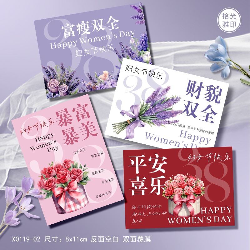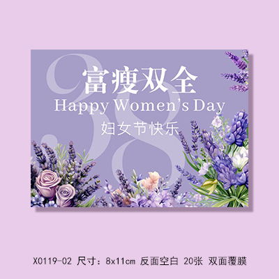 • 【B60】인사말 카드 보라색 여성의 날 카드 4가지 스타일 혼합 20장 8x11cm