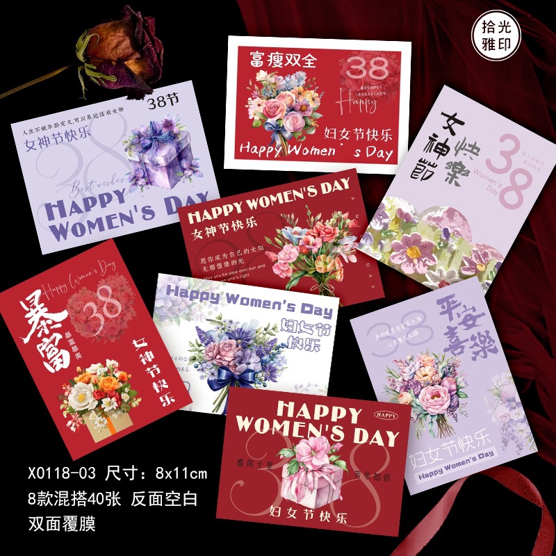 • 【AA】축하 카드 해피 여성의 날 4가지 스타일 믹스 앤 매치 20장 8x11cm