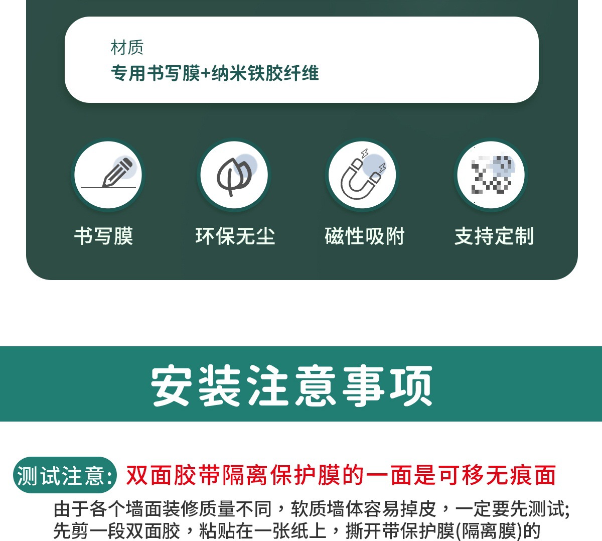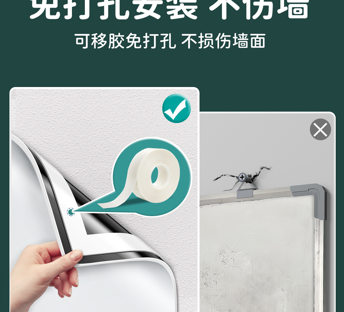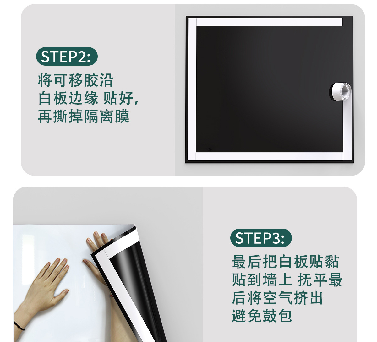 • 풀백 화이트보드 접착제 모델 [대형 사이즈에 적합]은 부드럽게 접착됩니다. -50x100cm