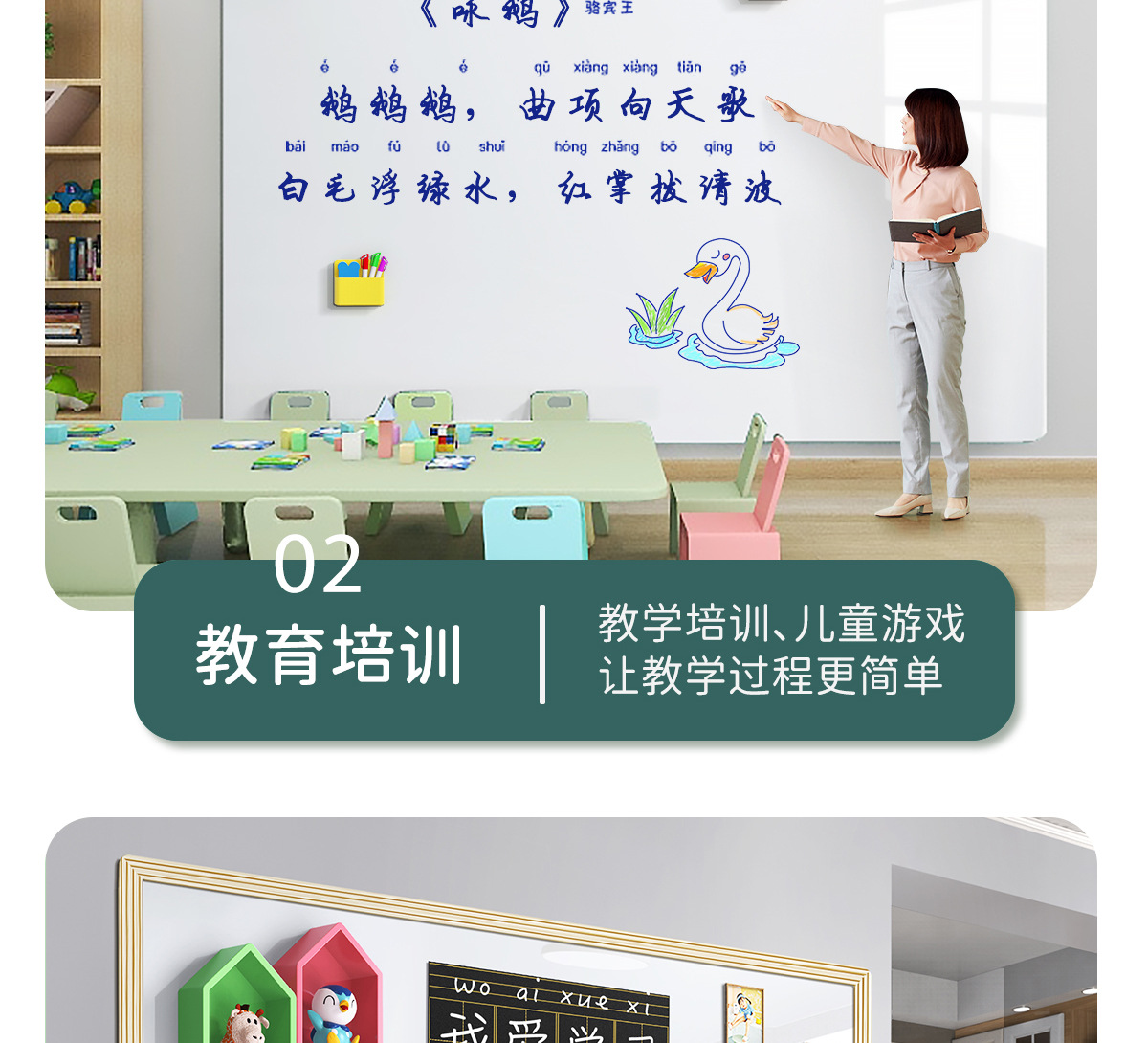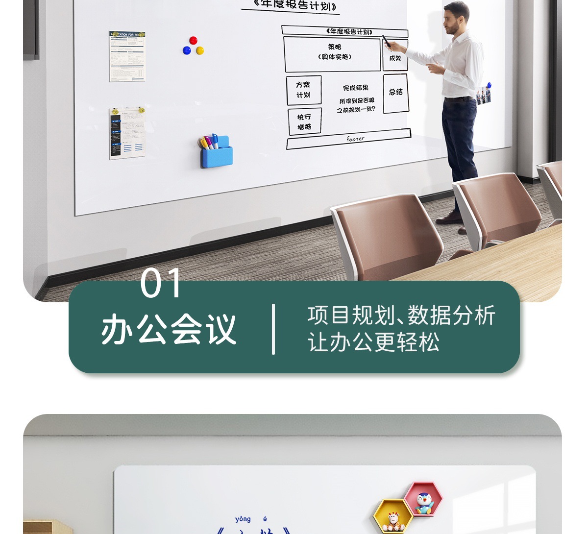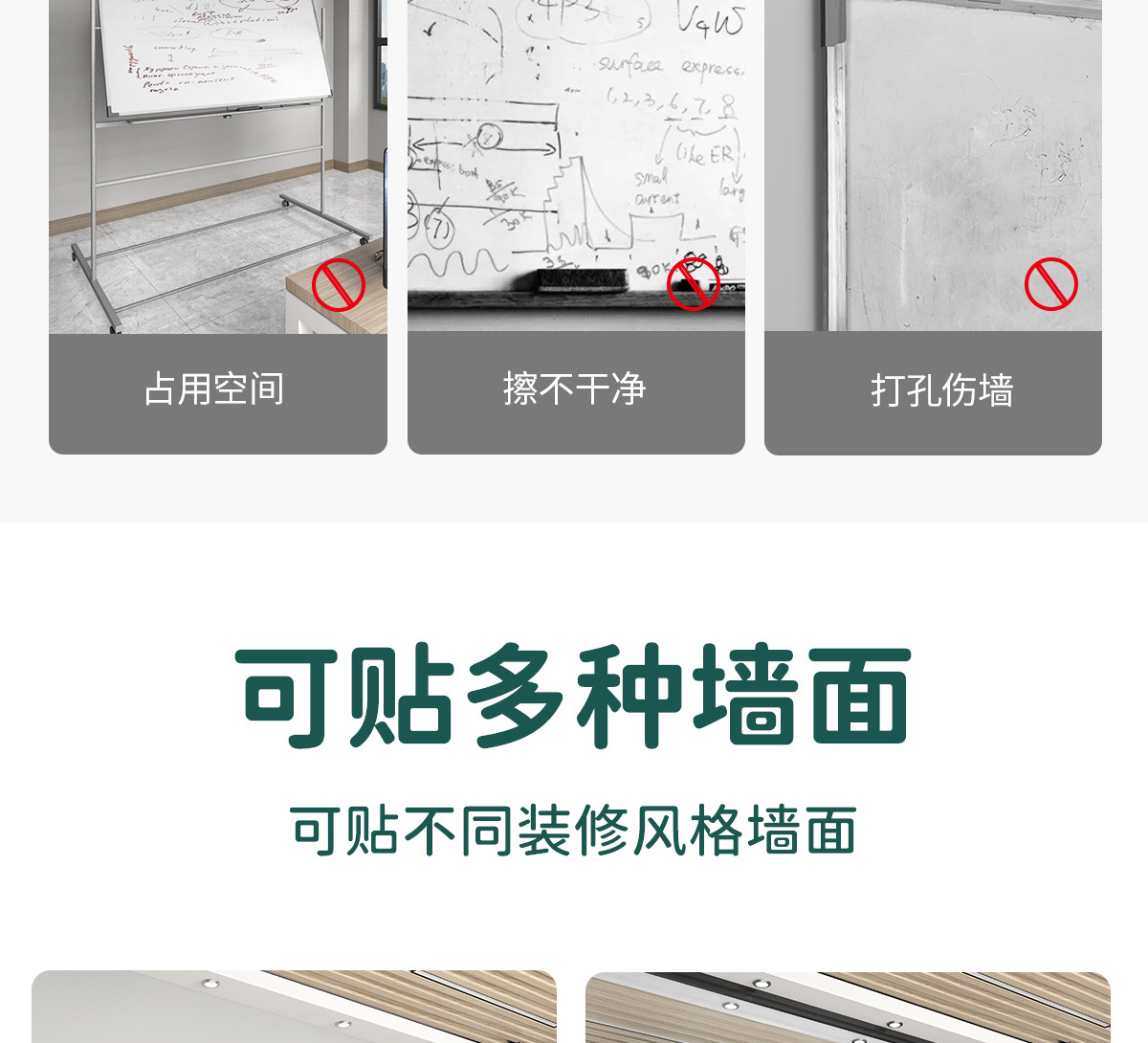 • 풀백 화이트보드 접착제 모델 [대형 사이즈에 적합]은 부드럽게 접착됩니다. -50x100cm