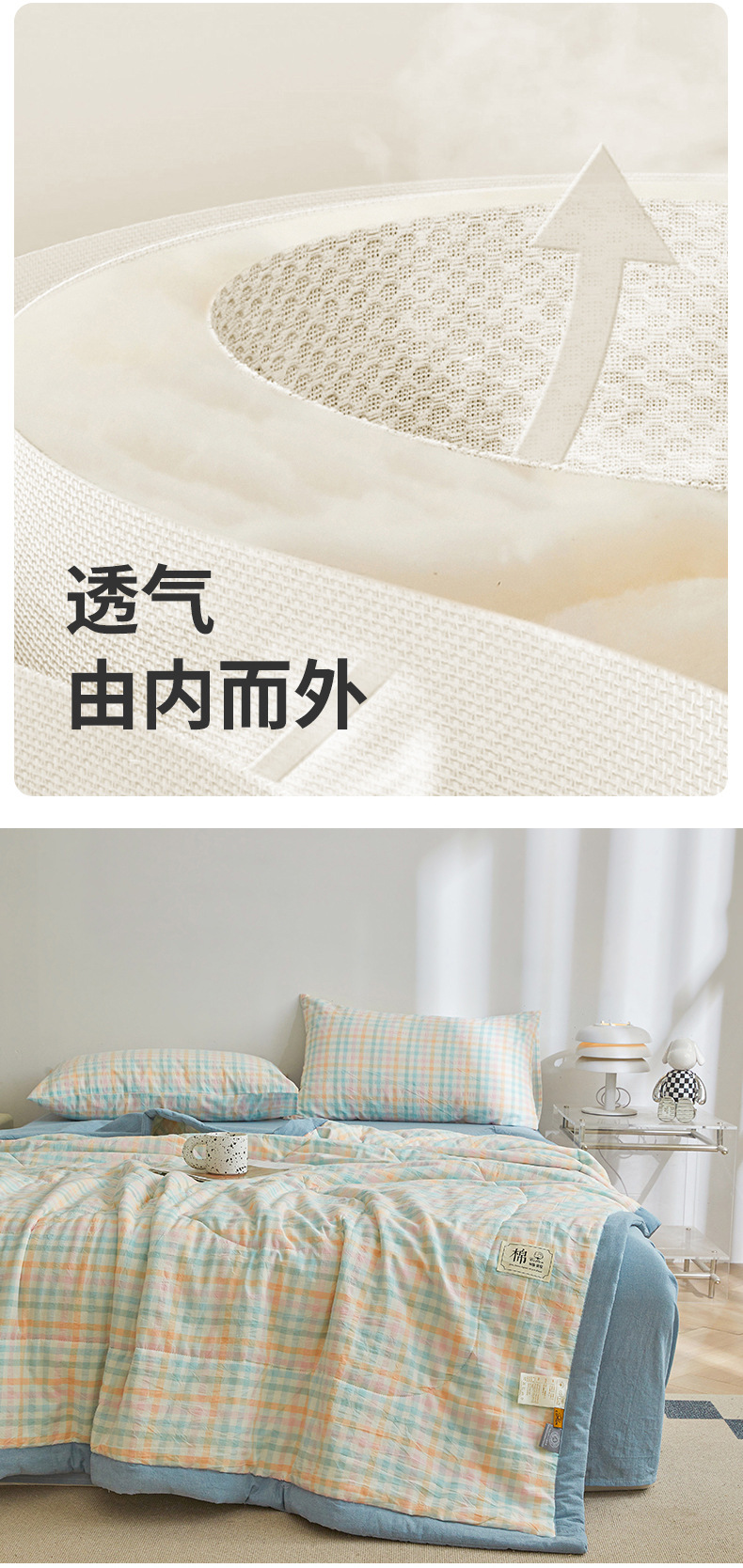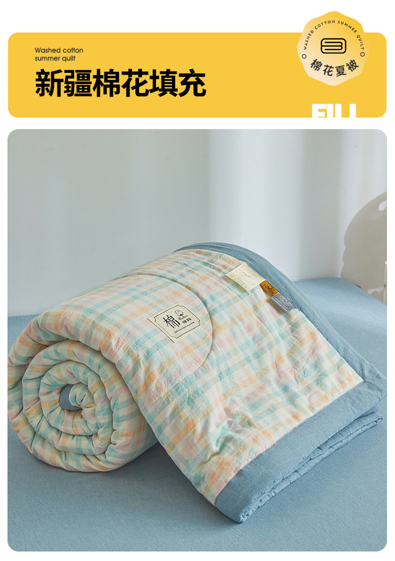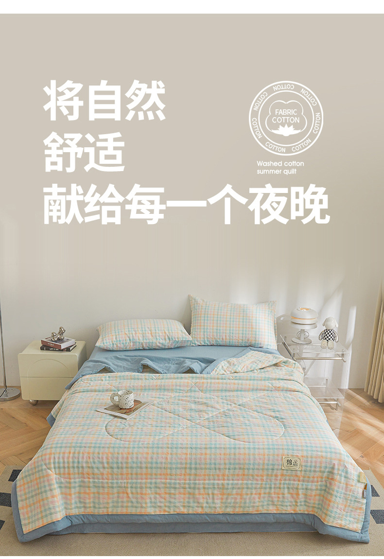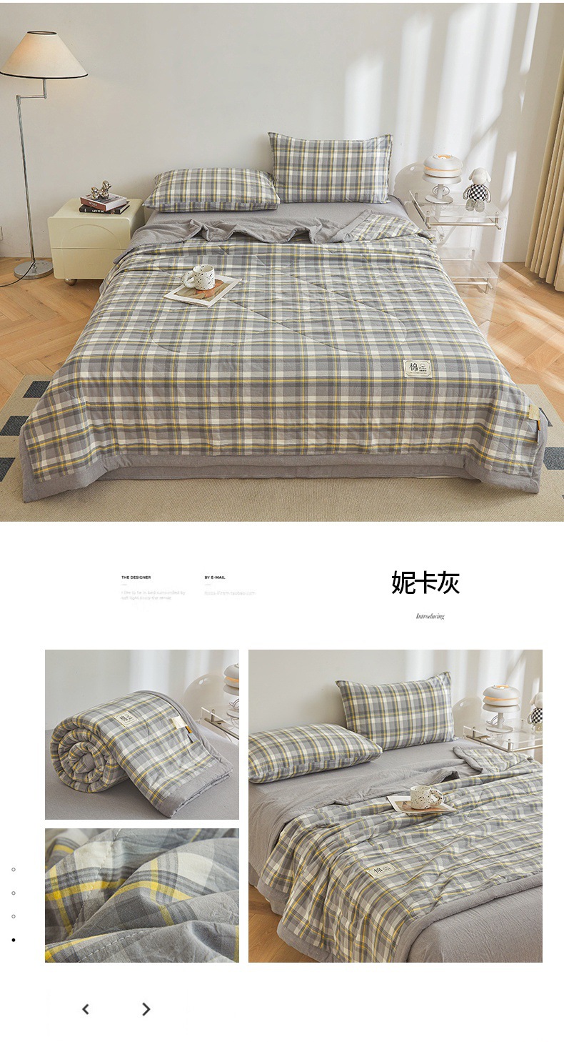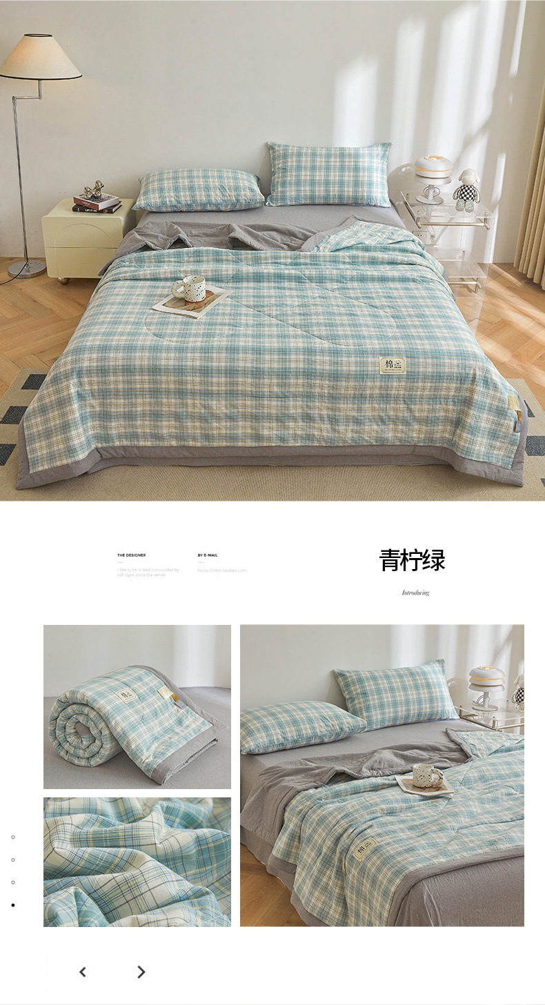 인쇄되지 않은 신장 면화 여름 이불 클래스 면화 이불 격자 무늬 통기성 에어컨 이불 여름 시원한 이불 기계 세척 가능한 얇은 이불