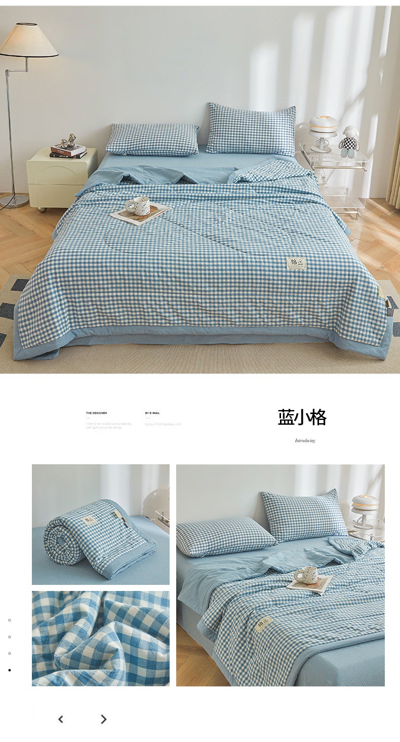 인쇄되지 않은 신장 면화 여름 이불 클래스 면화 이불 격자 무늬 통기성 에어컨 이불 여름 시원한 이불 기계 세척 가능한 얇은 이불스토어 가기