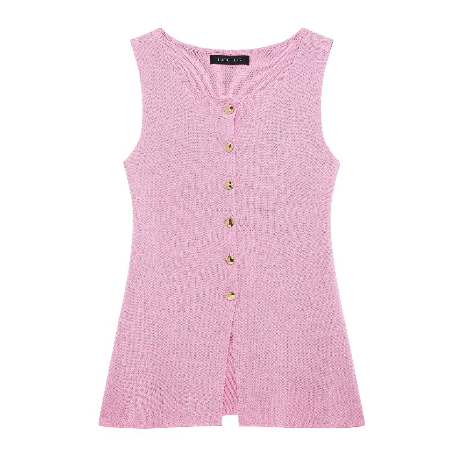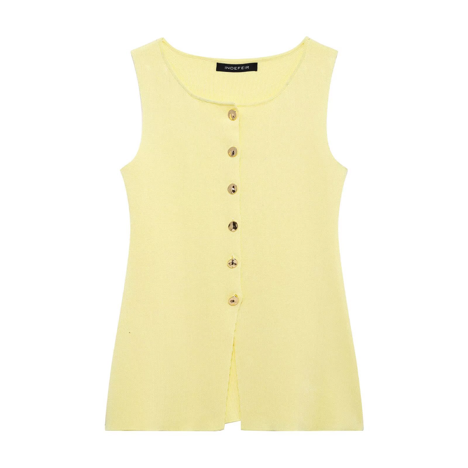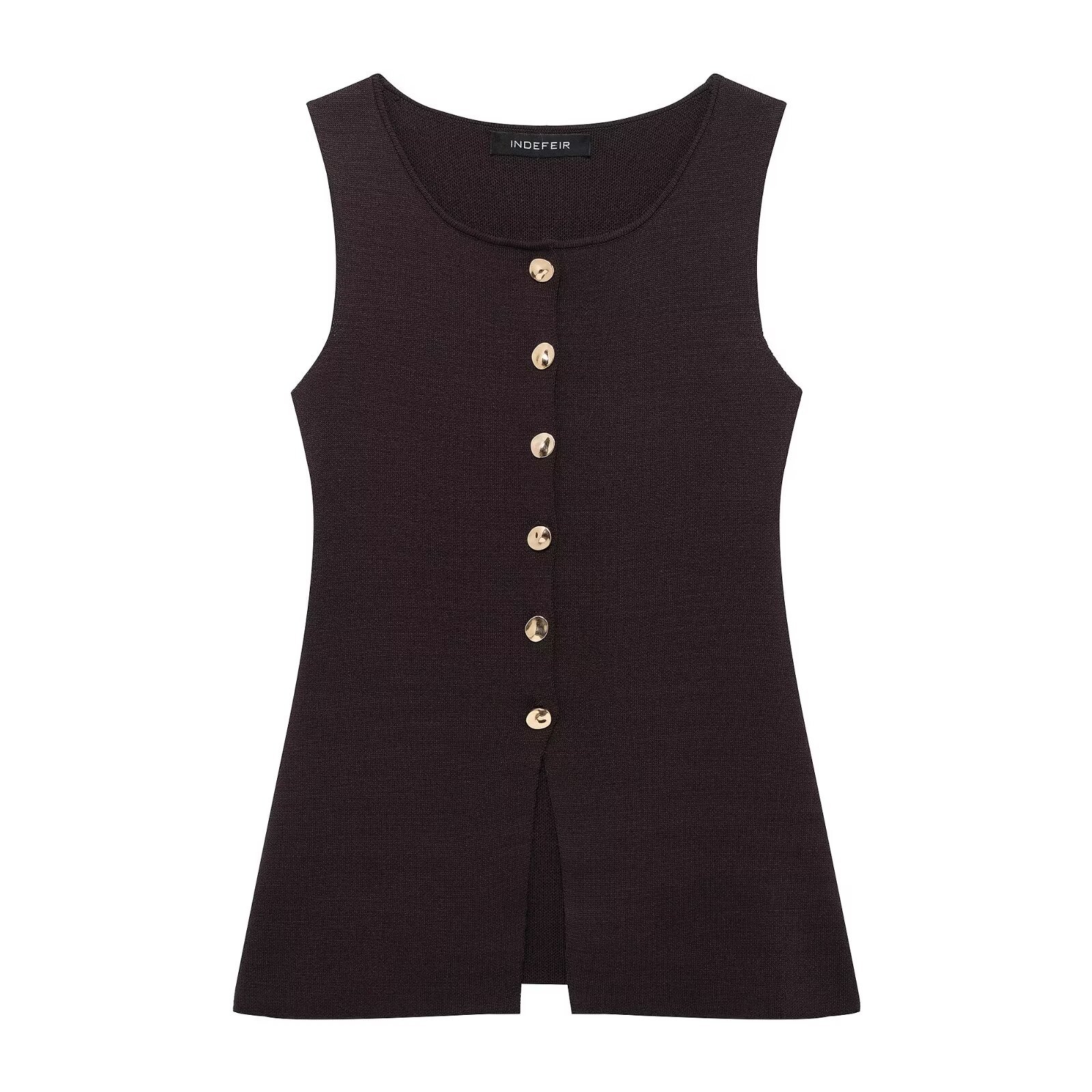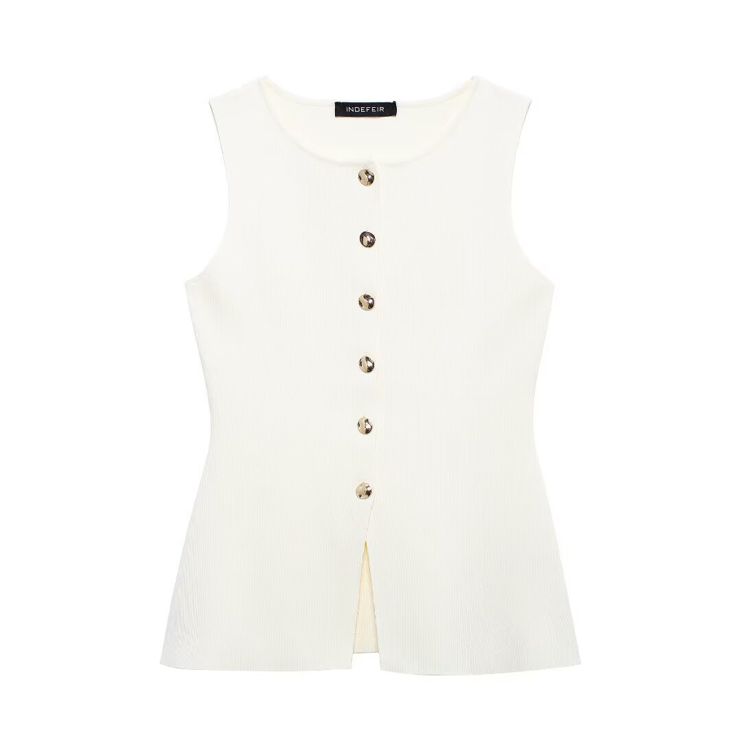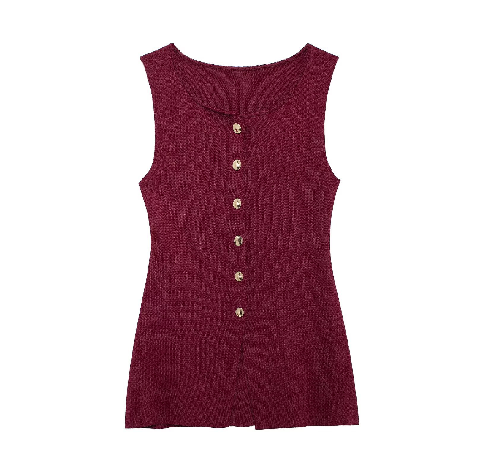 UC & ZA 국경 간 AliExpress 여성용 유럽과 미국 스타일의 크루 넥 골든 버튼 장식 플랫 니들 조끼 4192100스토어 가기