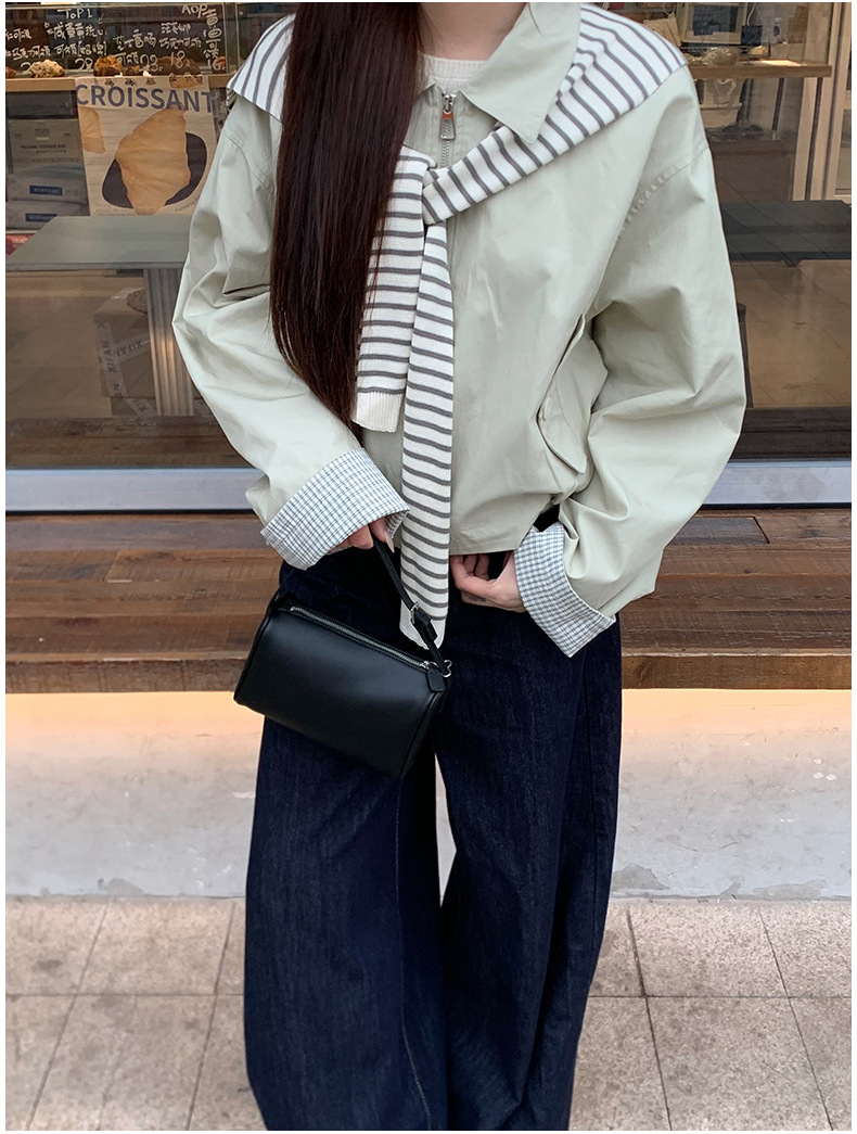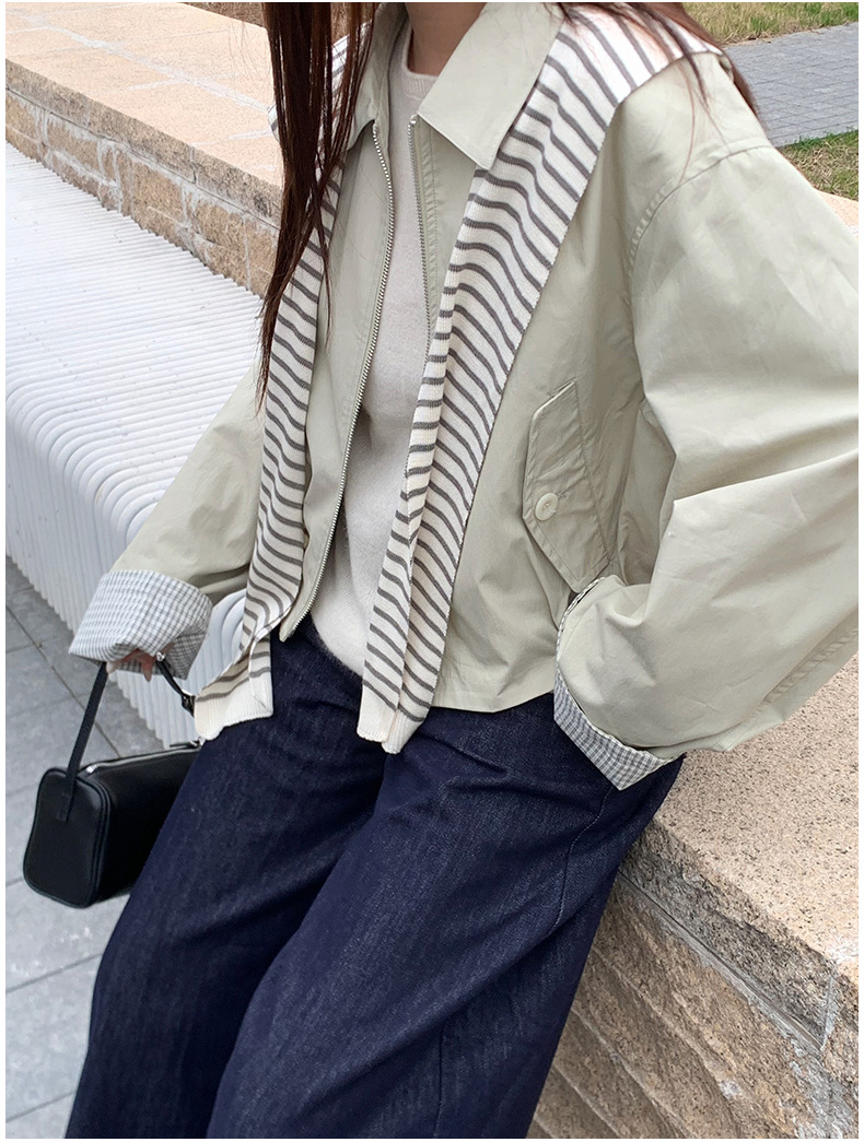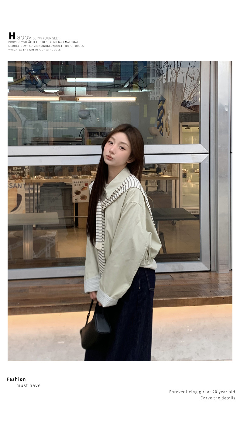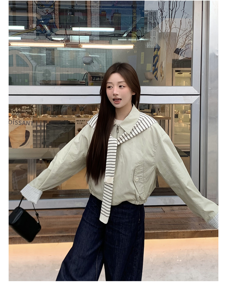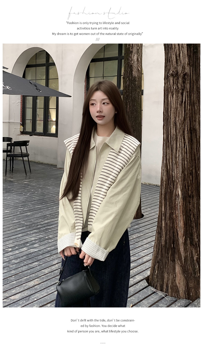 [Mengmei] 25 봄 스타일 줄무늬 목도리 옷깃 얕은 카치 코트 여성의 하이 엔드 센스 재킷 탑 슈퍼 멋져