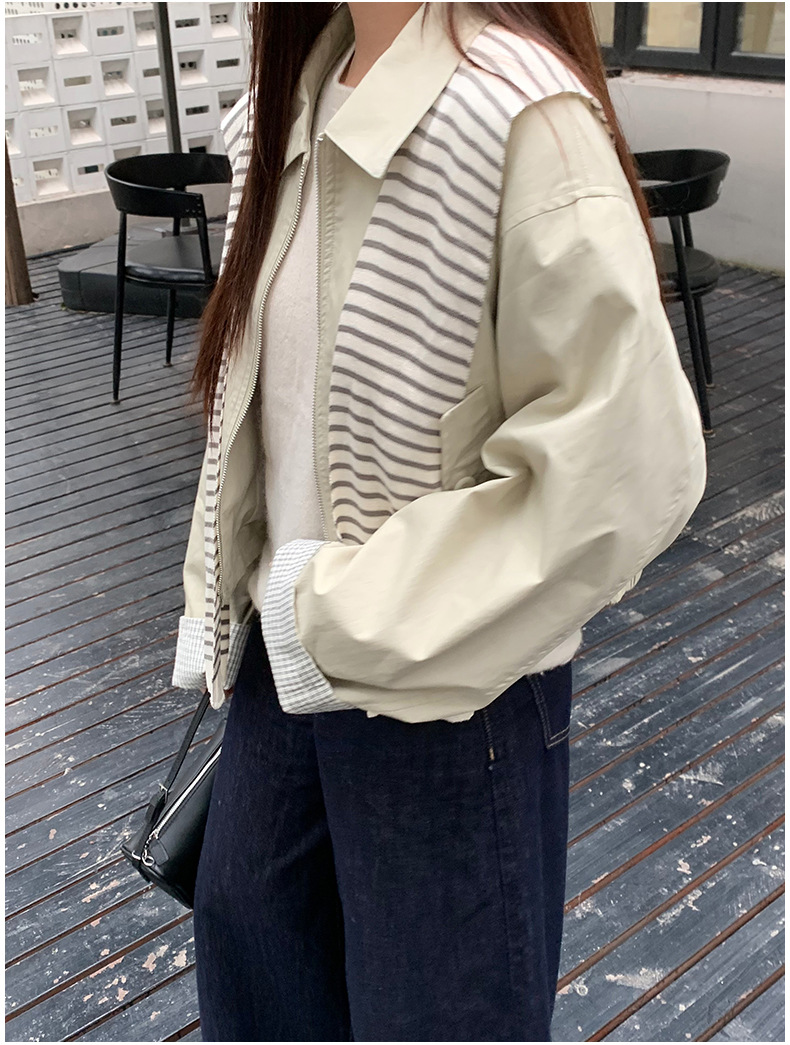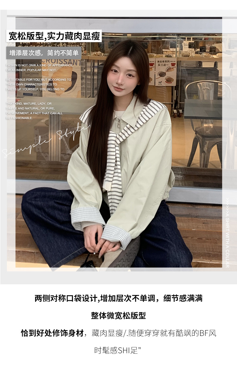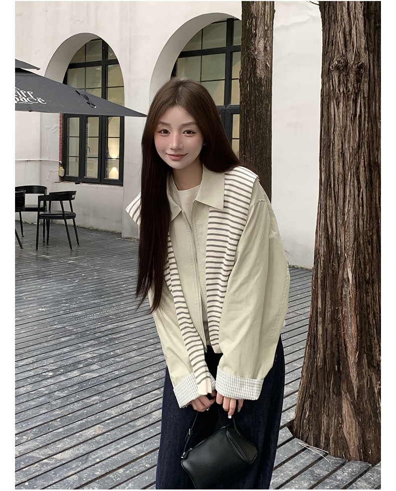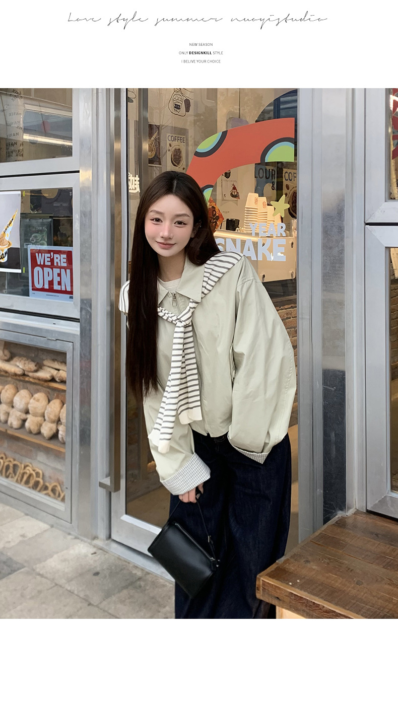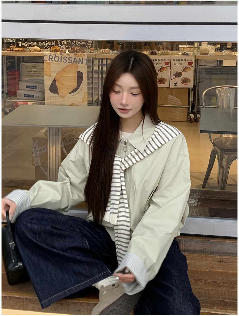 [Mengmei] 25 봄 스타일 줄무늬 목도리 옷깃 얕은 카치 코트 여성의 하이 엔드 센스 재킷 탑 슈퍼 멋져