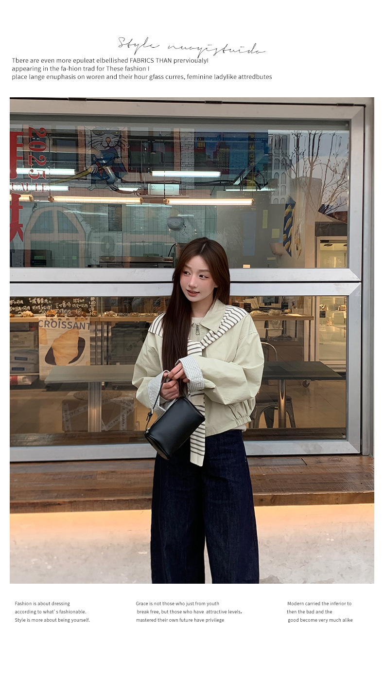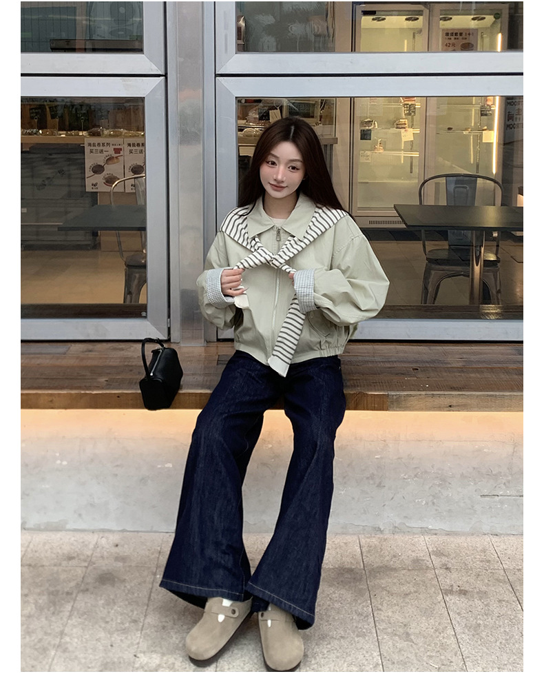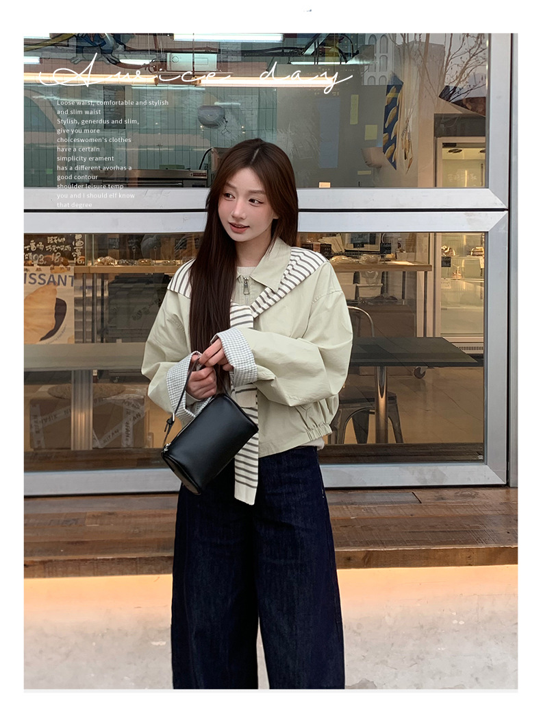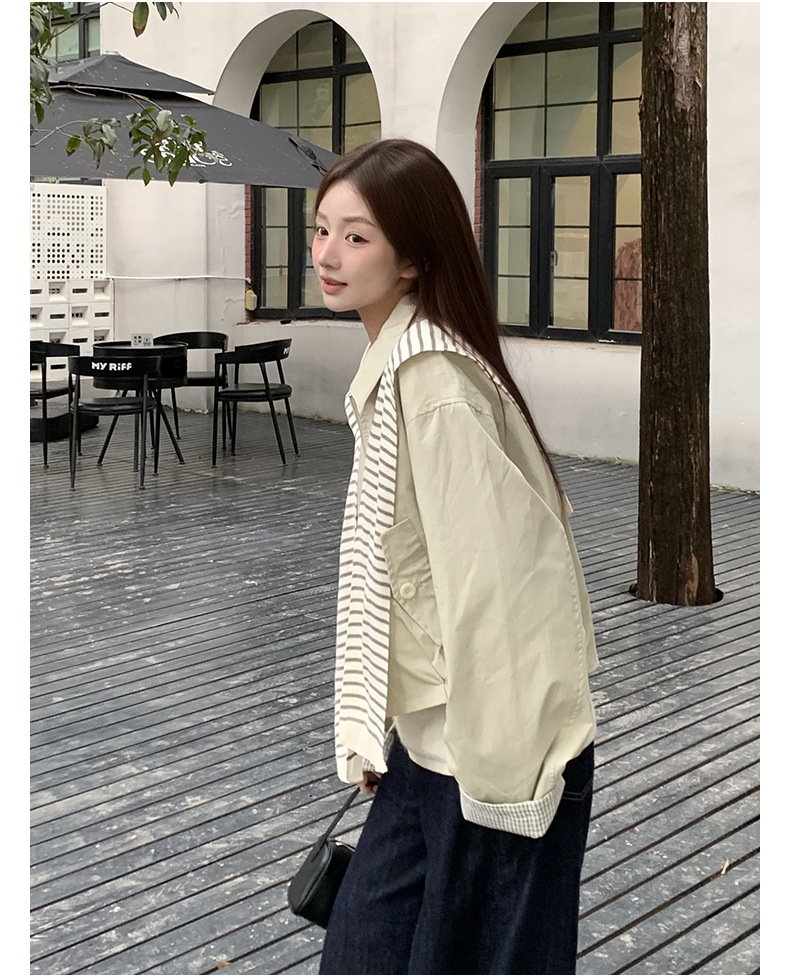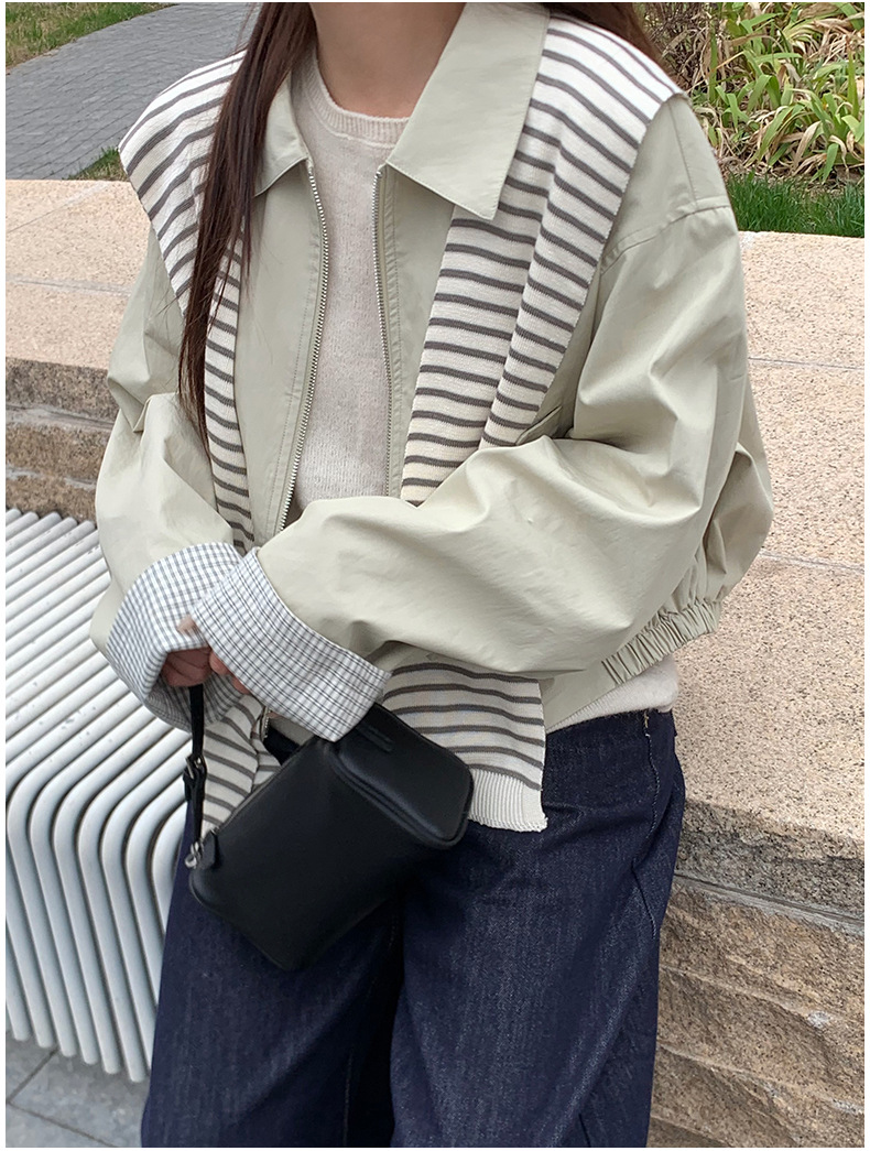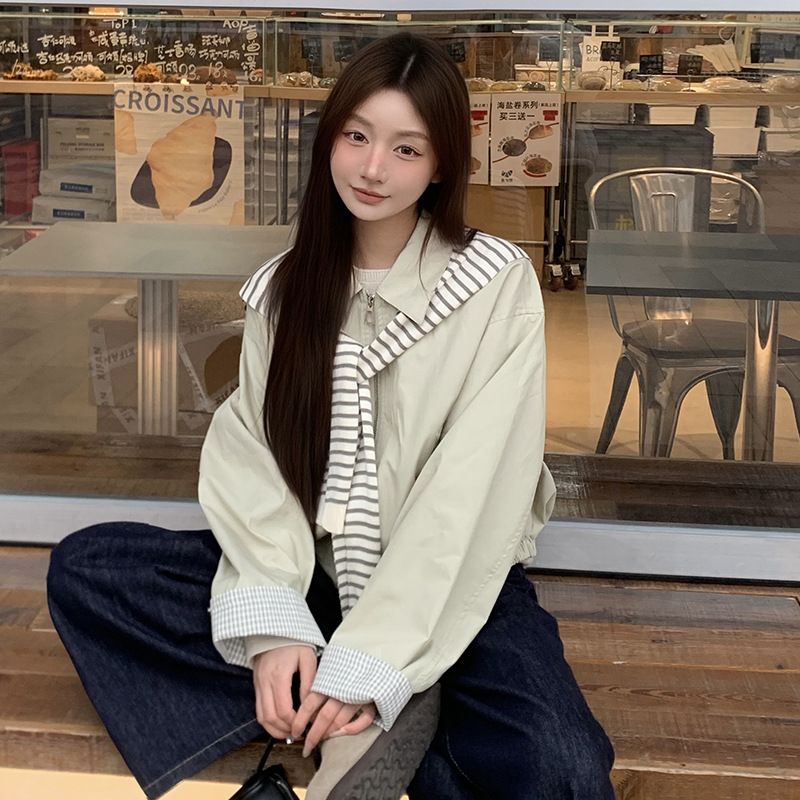 [Mengmei] 25 봄 스타일 줄무늬 목도리 옷깃 얕은 카치 코트 여성의 하이 엔드 센스 재킷 탑 슈퍼 멋져
