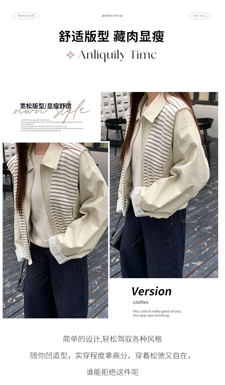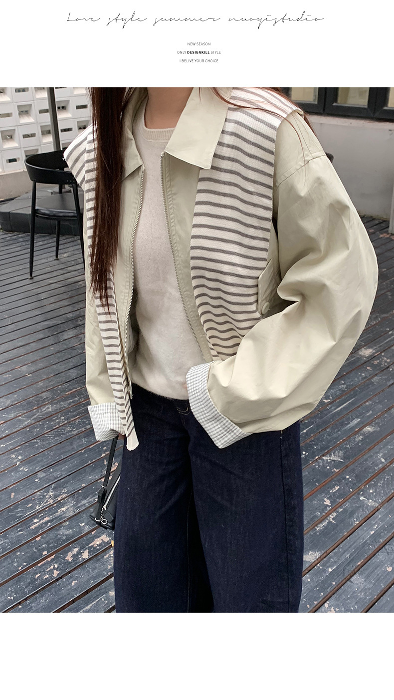 [Mengmei] 25 봄 스타일 줄무늬 목도리 옷깃 얕은 카치 코트 여성의 하이 엔드 센스 재킷 탑 슈퍼 멋져스토어 가기