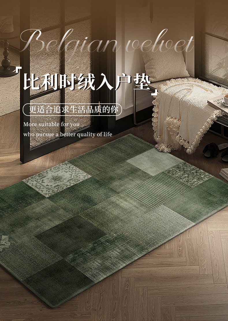 중세풍 현관 매트, 레트로풍 아메리칸 스타일 녹색 카펫, 벨기에산 벨벳 도어매트, 현관 신발 교체용 발매트스토어 가기