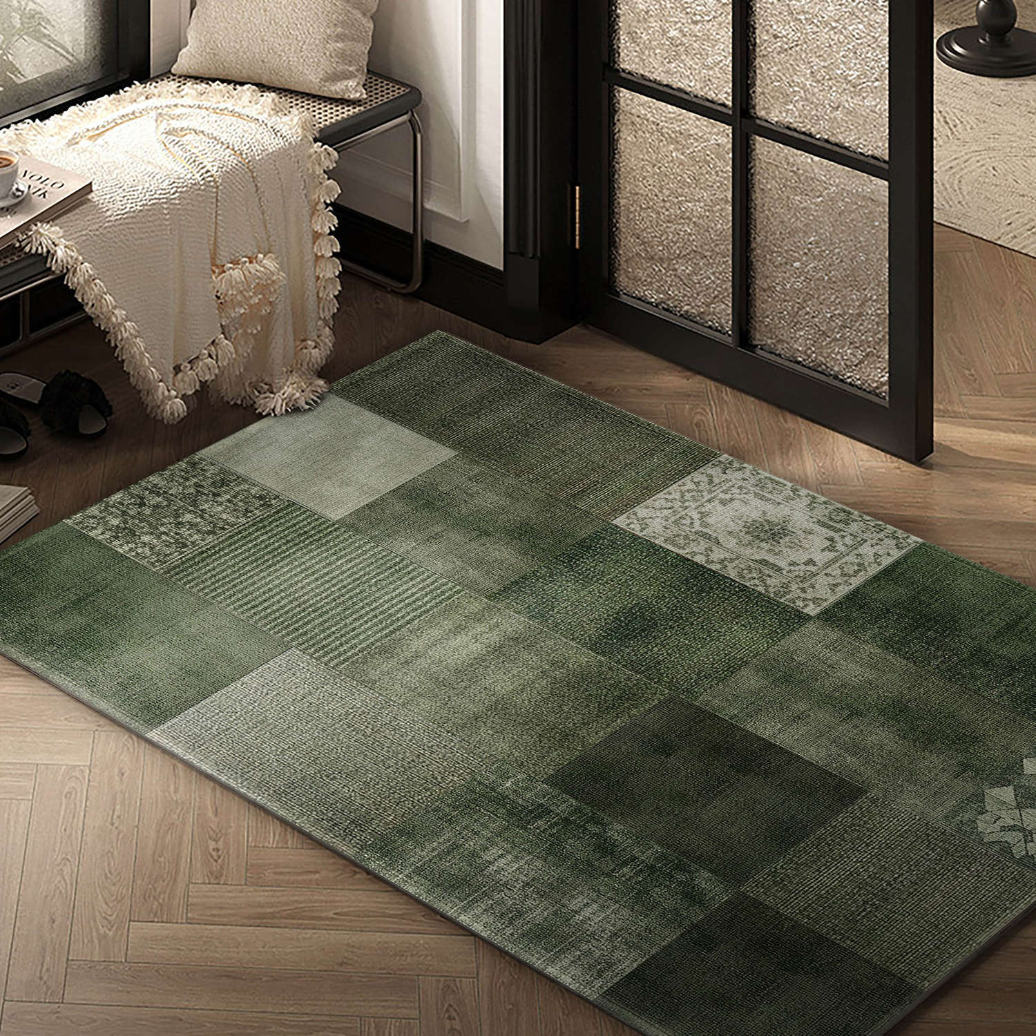 중세풍 현관 매트, 레트로풍 아메리칸 스타일 녹색 카펫, 벨기에산 벨벳 도어매트, 현관 신발 교체용 발매트