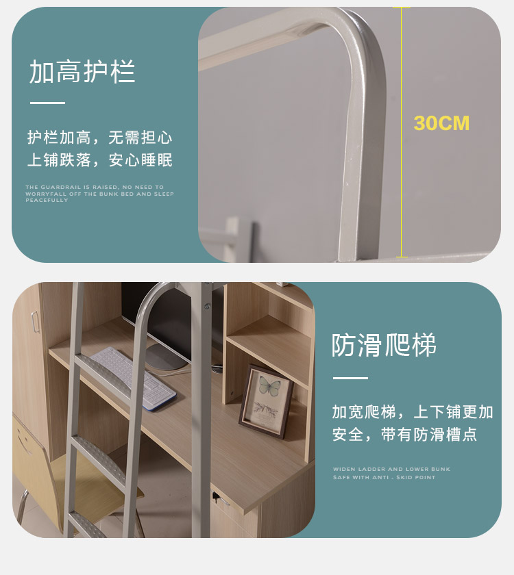 학생 기숙사 아파트 침대 침대 낮은 테이블 높고 낮은 철 침대 학교 직원 기숙사 옷장 책상 조합 철 프레임 침대