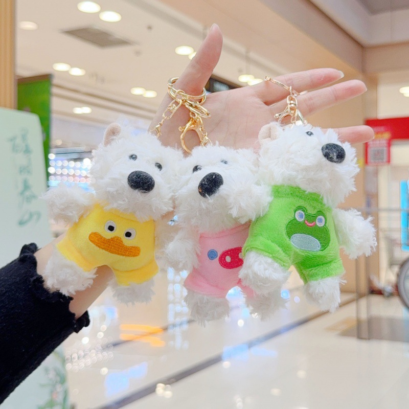 새로운 웨스트 하이츠 봉제 개 펜던트 만화 인형 뒤틀린 강아지 착용 인형 가방 펜던트 키 체인