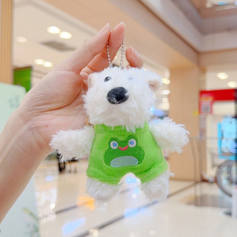 새로운 웨스트 하이츠 봉제 개 펜던트 만화 인형 뒤틀린 강아지 착용 인형 가방 펜던트 키 체인스토어 가기
