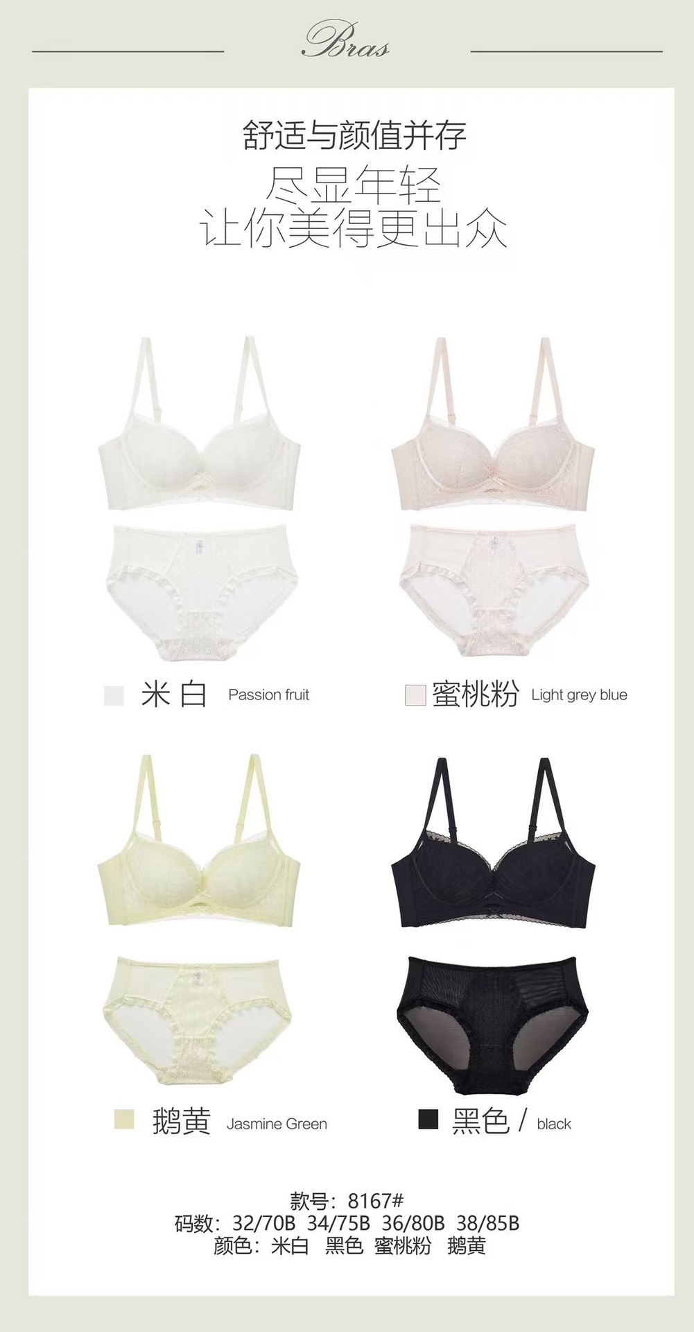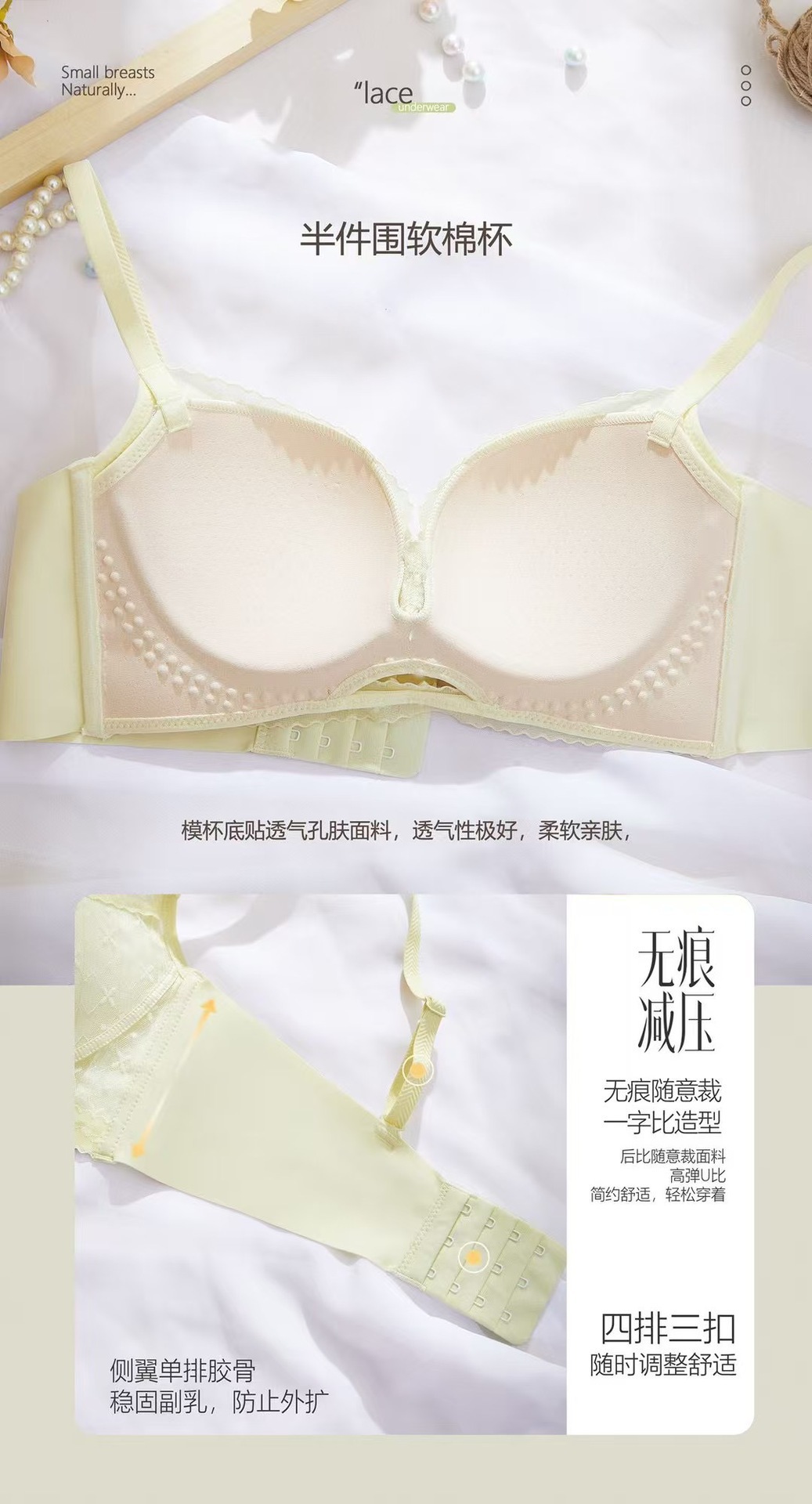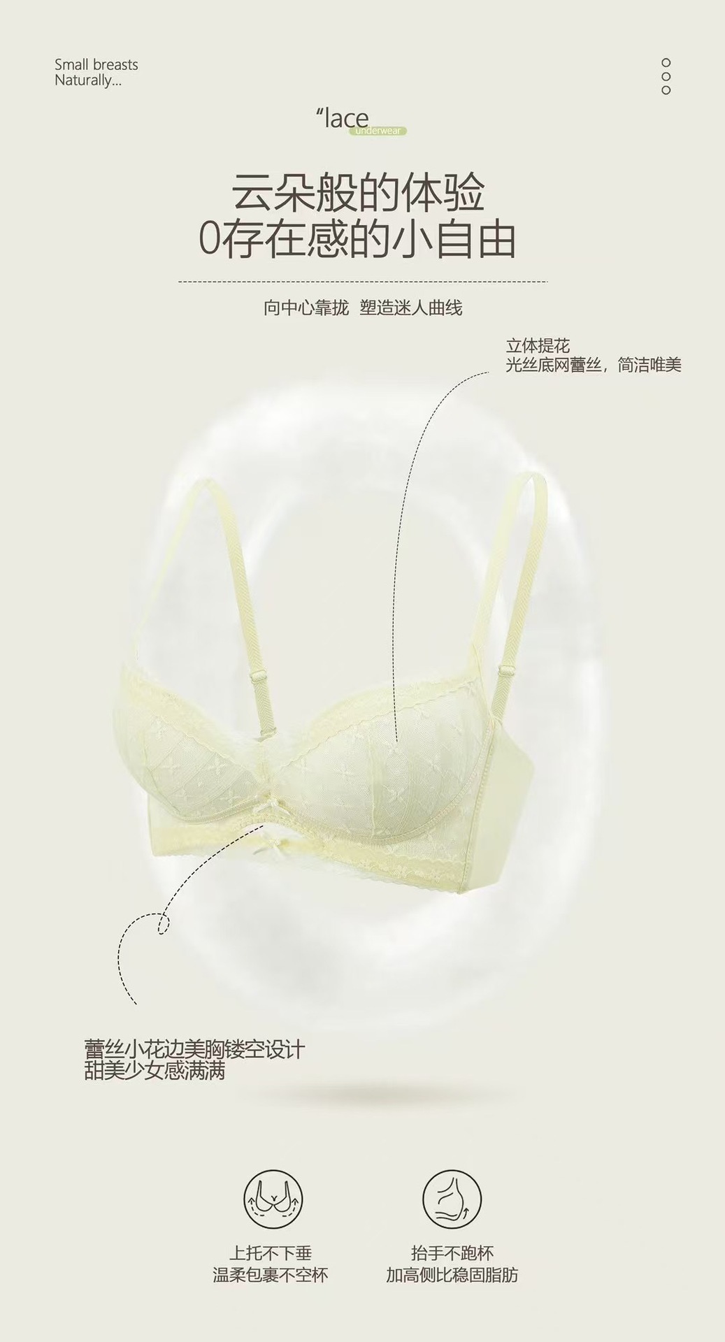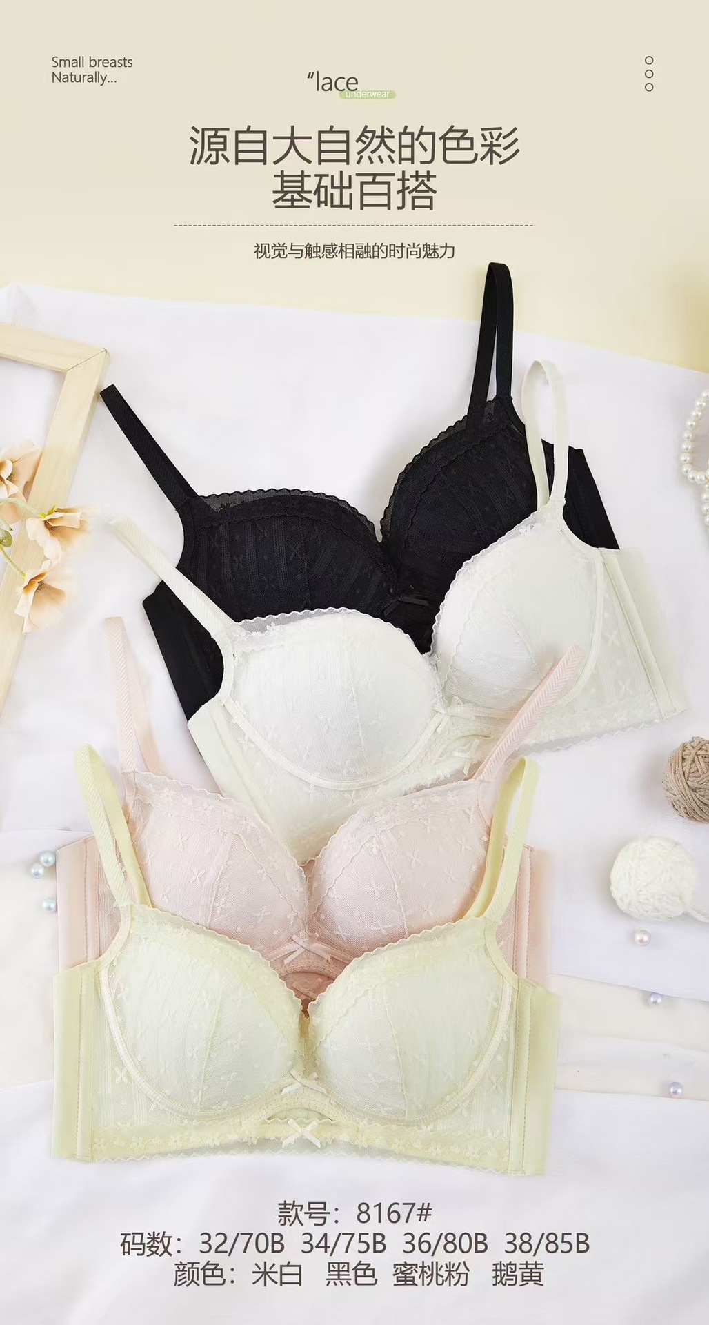 新款8167 无钢圈内衣小胸聚拢性感蕾丝边舒适透气收副乳文胸