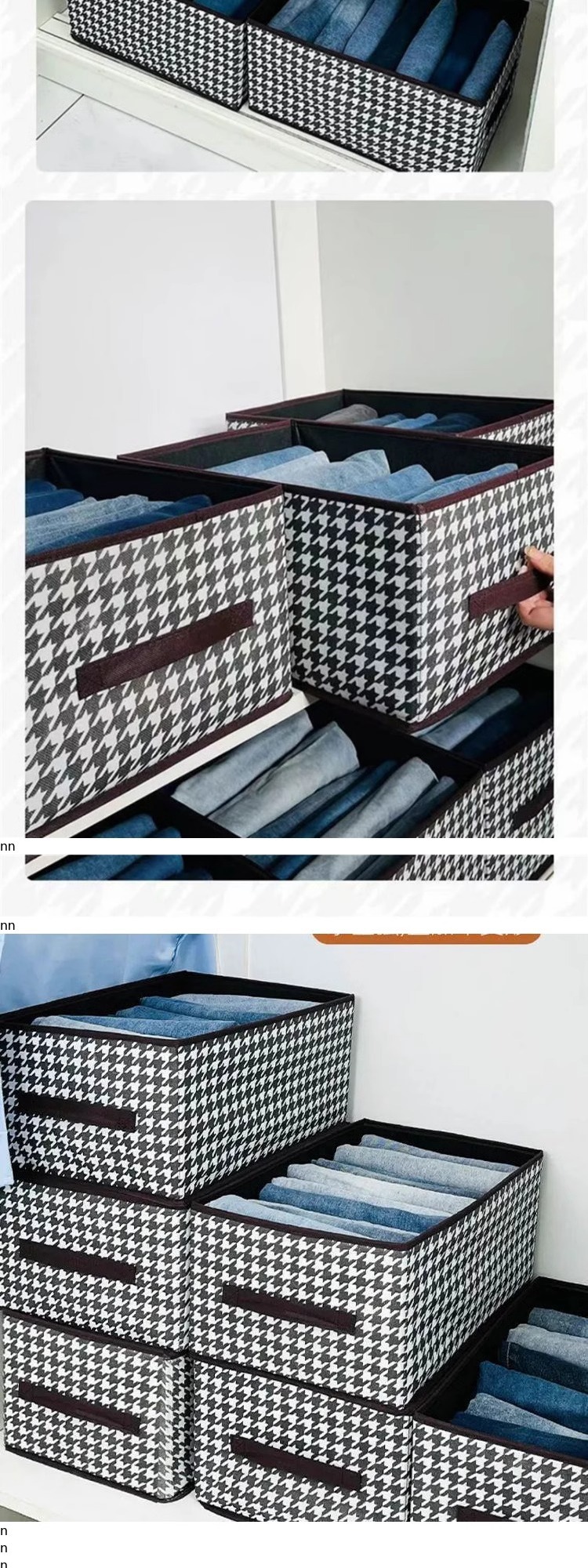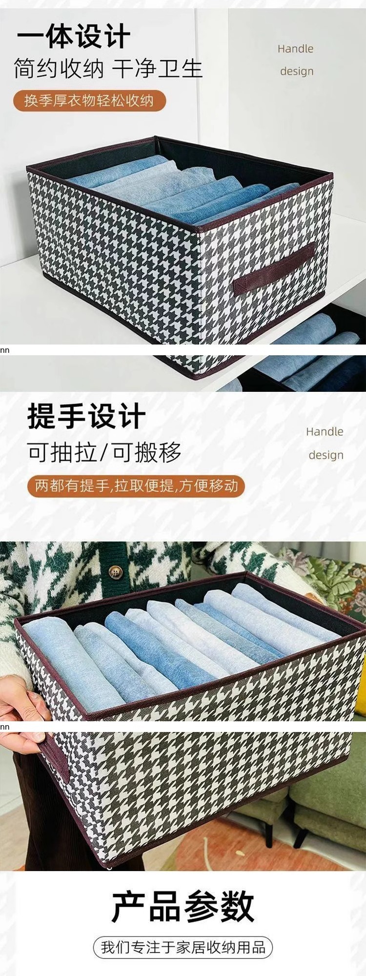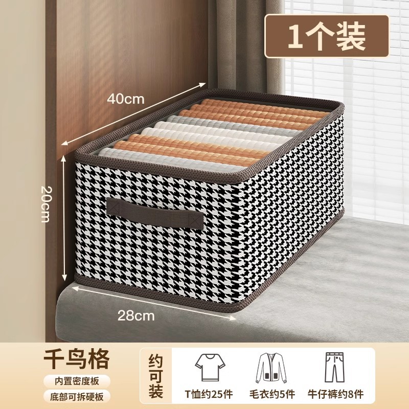 千鸟格秋冬衣服收纳盒带盖放衣柜收纳箱家用折叠整理盒分层收纳筐