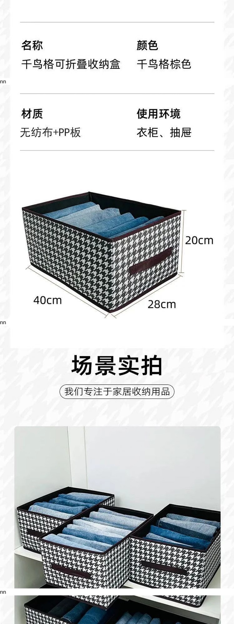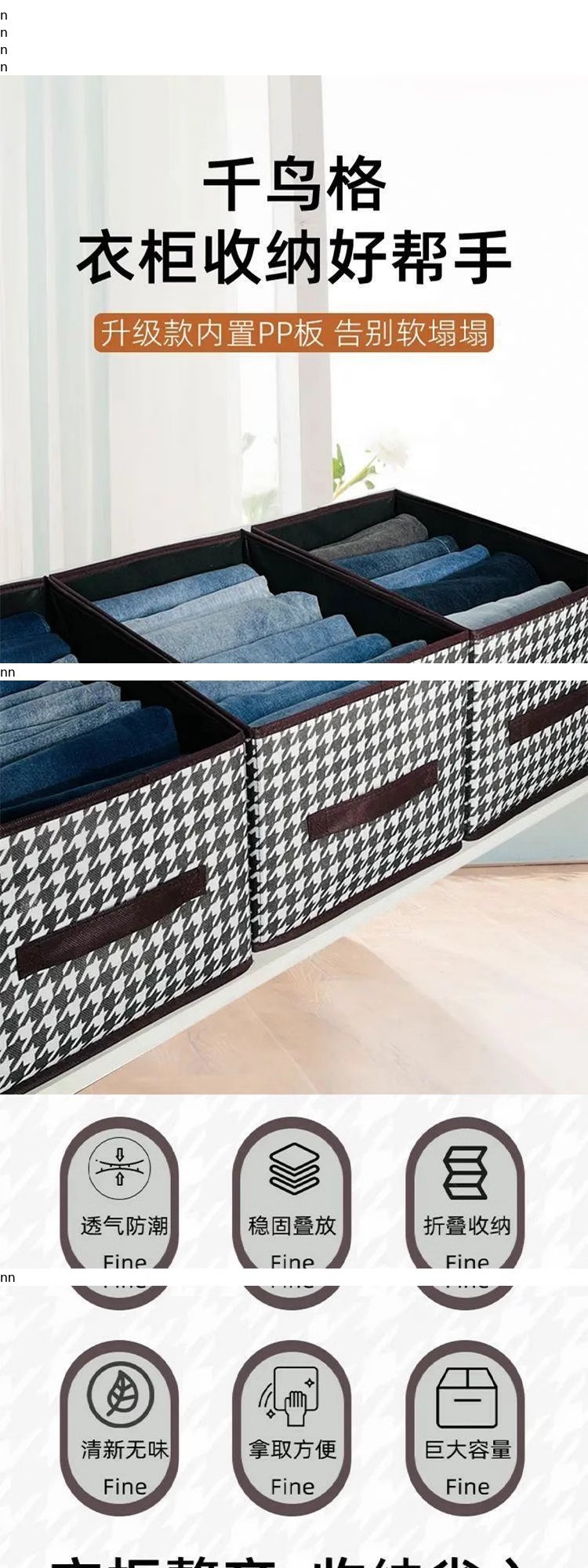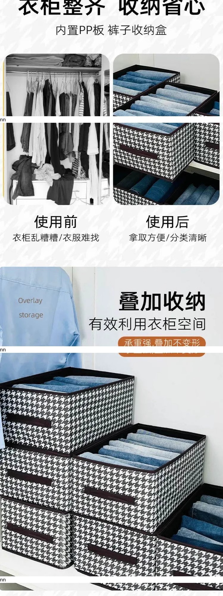 千鸟格秋冬衣服收纳盒带盖放衣柜收纳箱家用折叠整理盒分层收纳筐