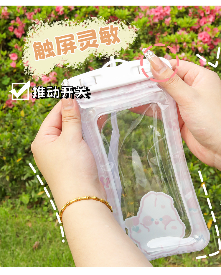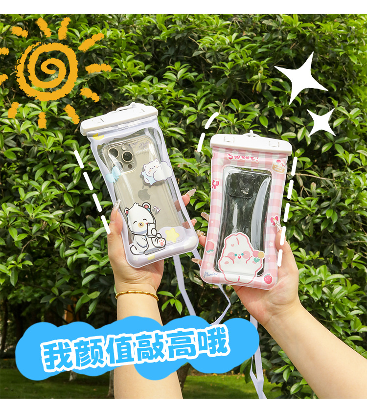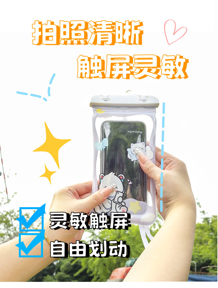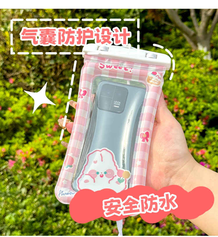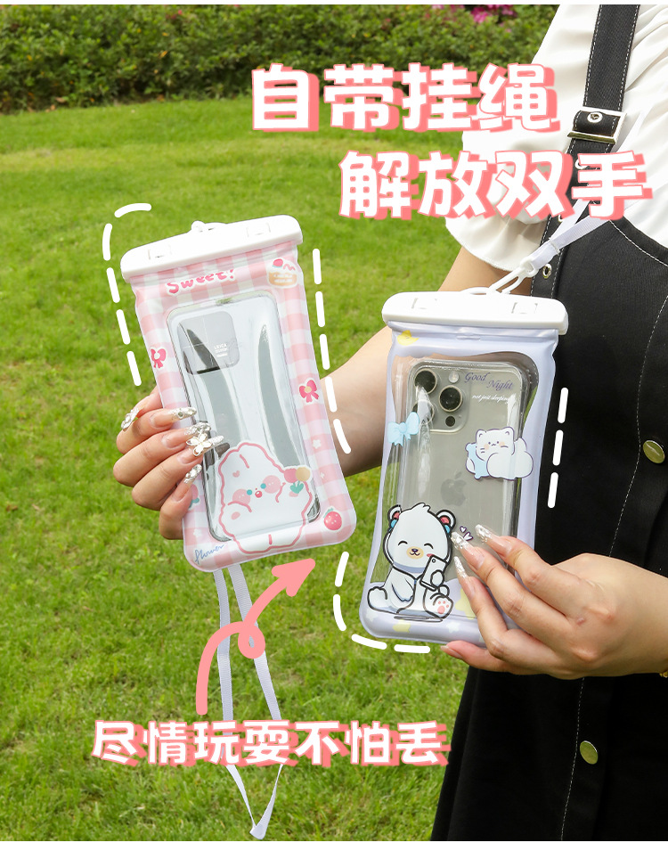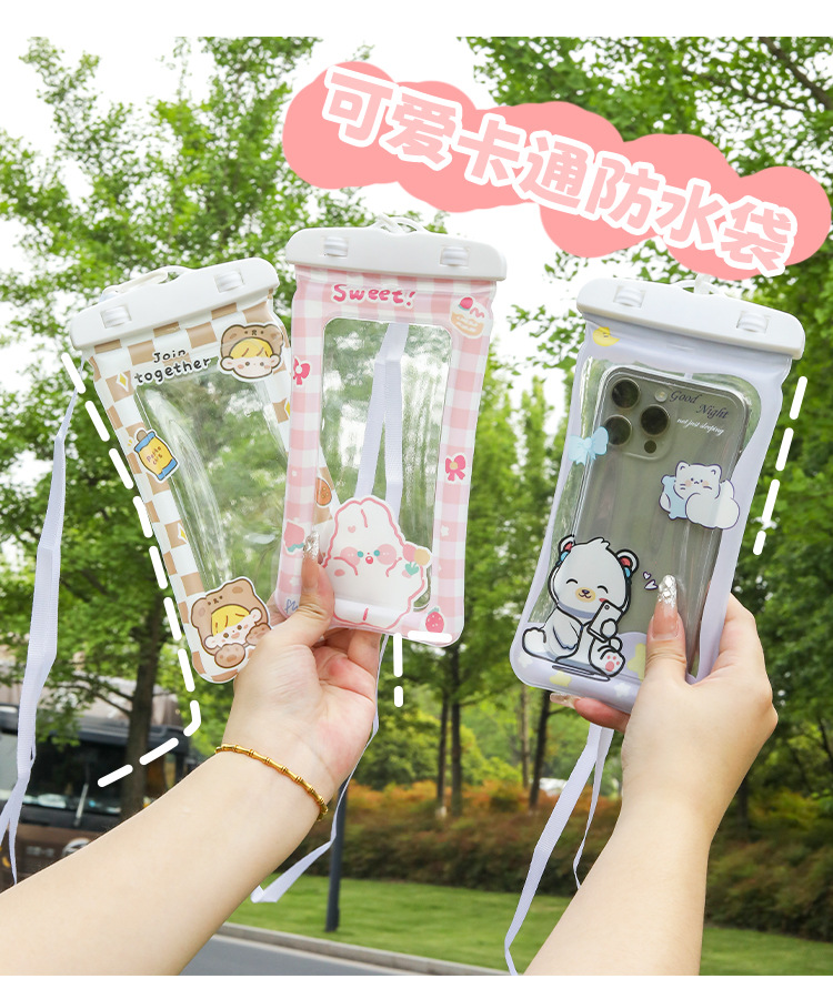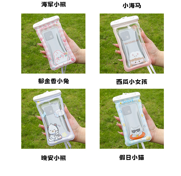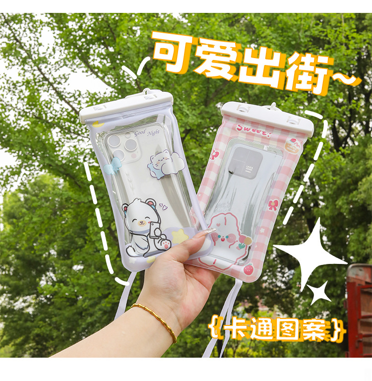 ✅만화 휴대 전화 방수 가방 터치 스크린 테이크 아웃 라이더는 에어백으로 휴대 전화를 표류하는 목 휴대 전화 케이스 수영을 걸 수 있습니다.스토어 가기