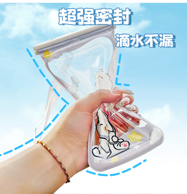 ✅만화 휴대 전화 방수 가방 터치 스크린 테이크 아웃 라이더는 에어백으로 휴대 전화를 표류하는 목 휴대 전화 케이스 수영을 걸 수 있습니다.