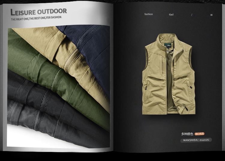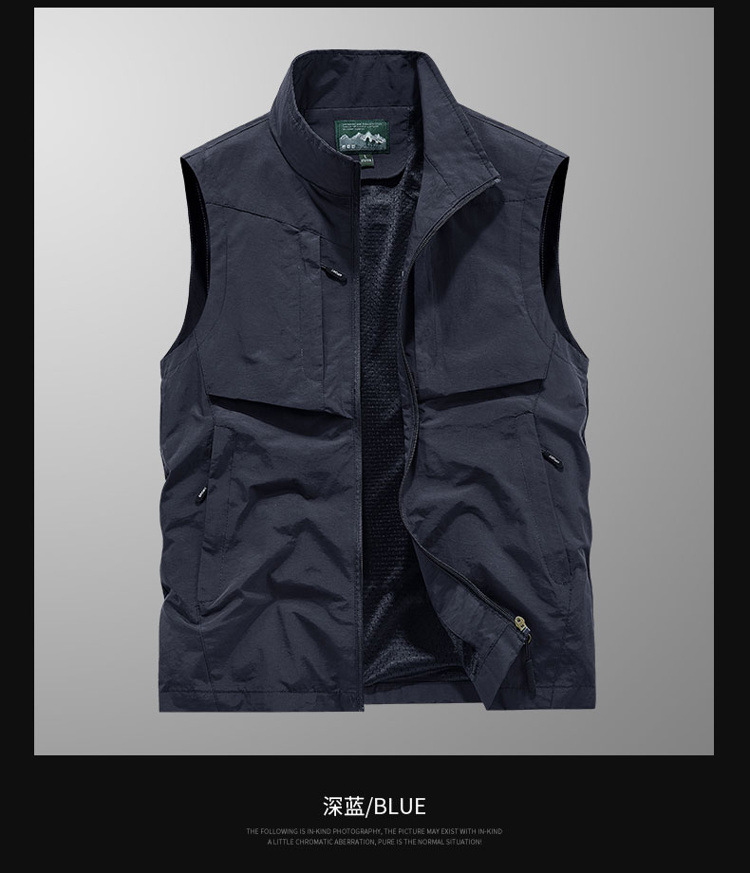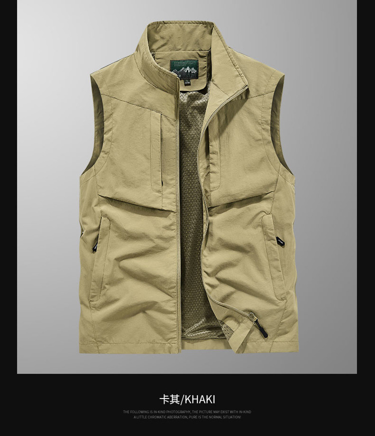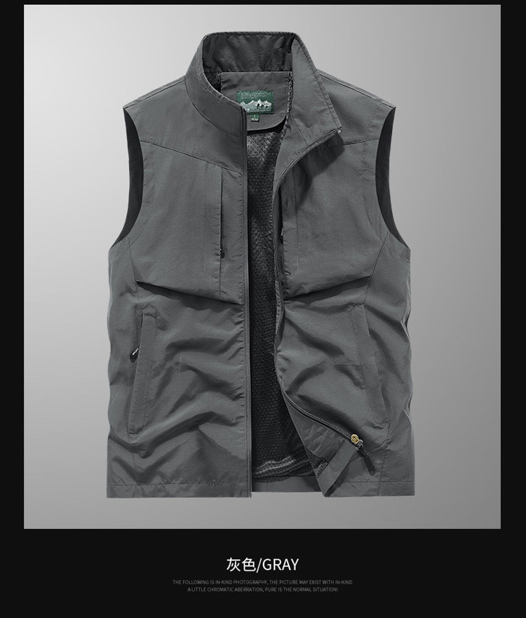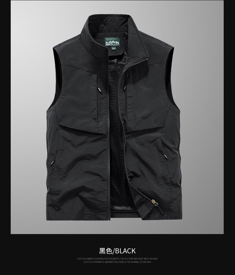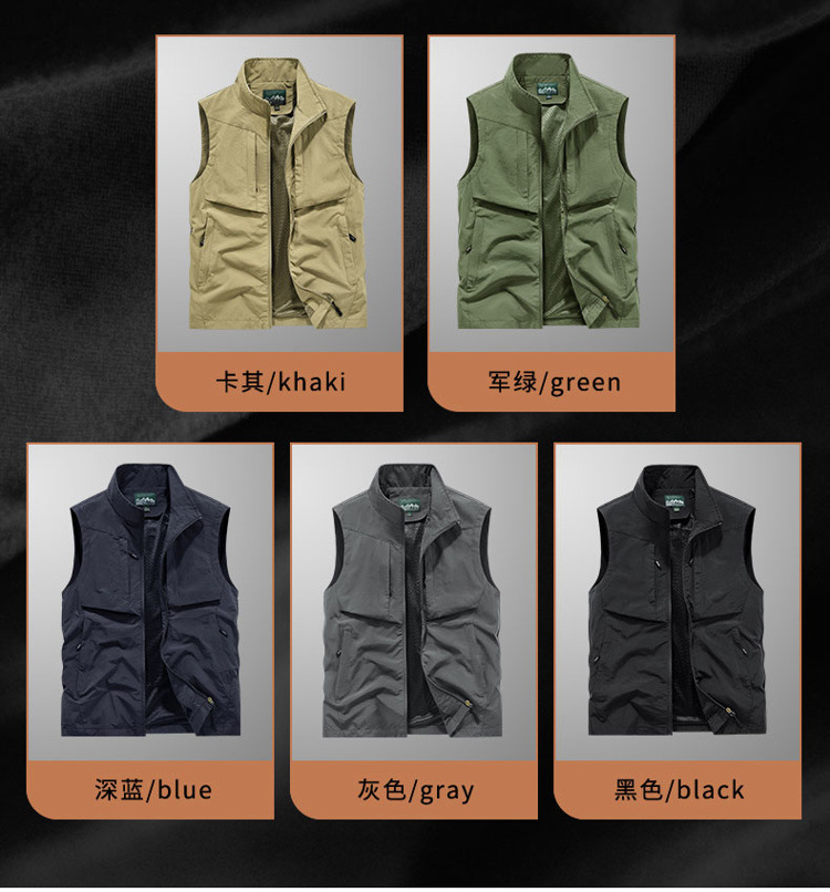 봄과 가을 조끼 남자 야외 조끼 민소매 캐주얼 얇은 사진 낚시 조끼 솔리드 컬러 작업복 조끼