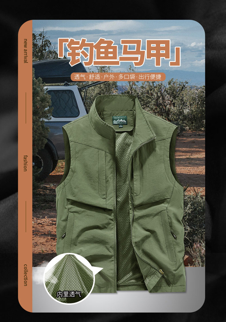 봄과 가을 조끼 남자 야외 조끼 민소매 캐주얼 얇은 사진 낚시 조끼 솔리드 컬러 작업복 조끼스토어 가기