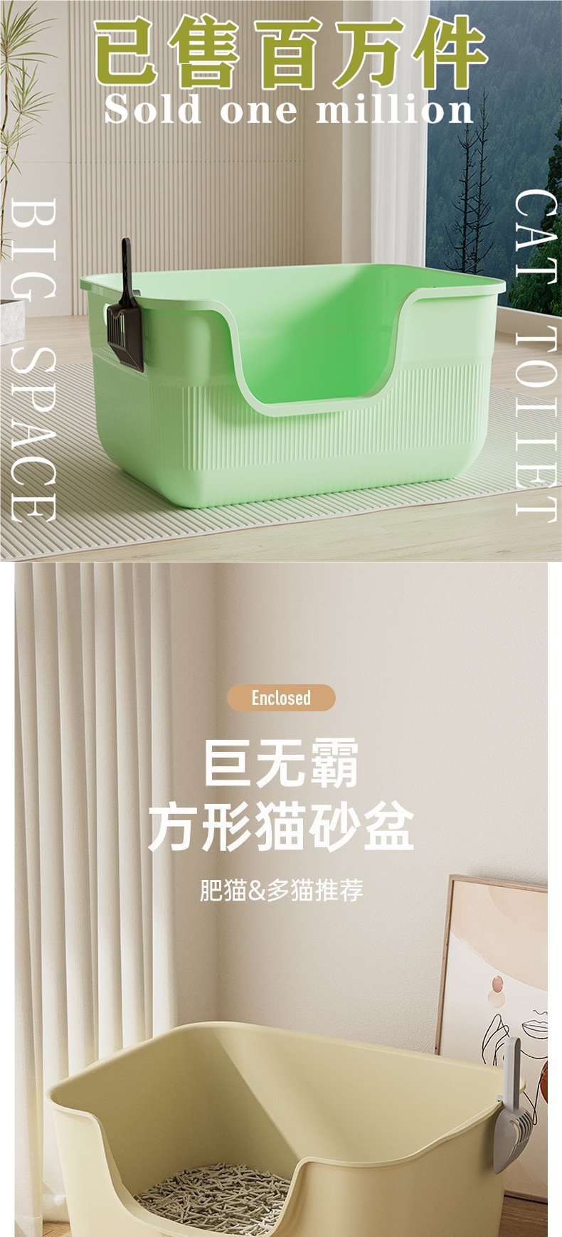• 대형 고양이 배변 상자 15kg인치 [라임 그린] 삽 포함