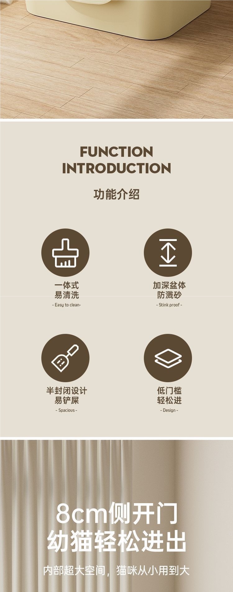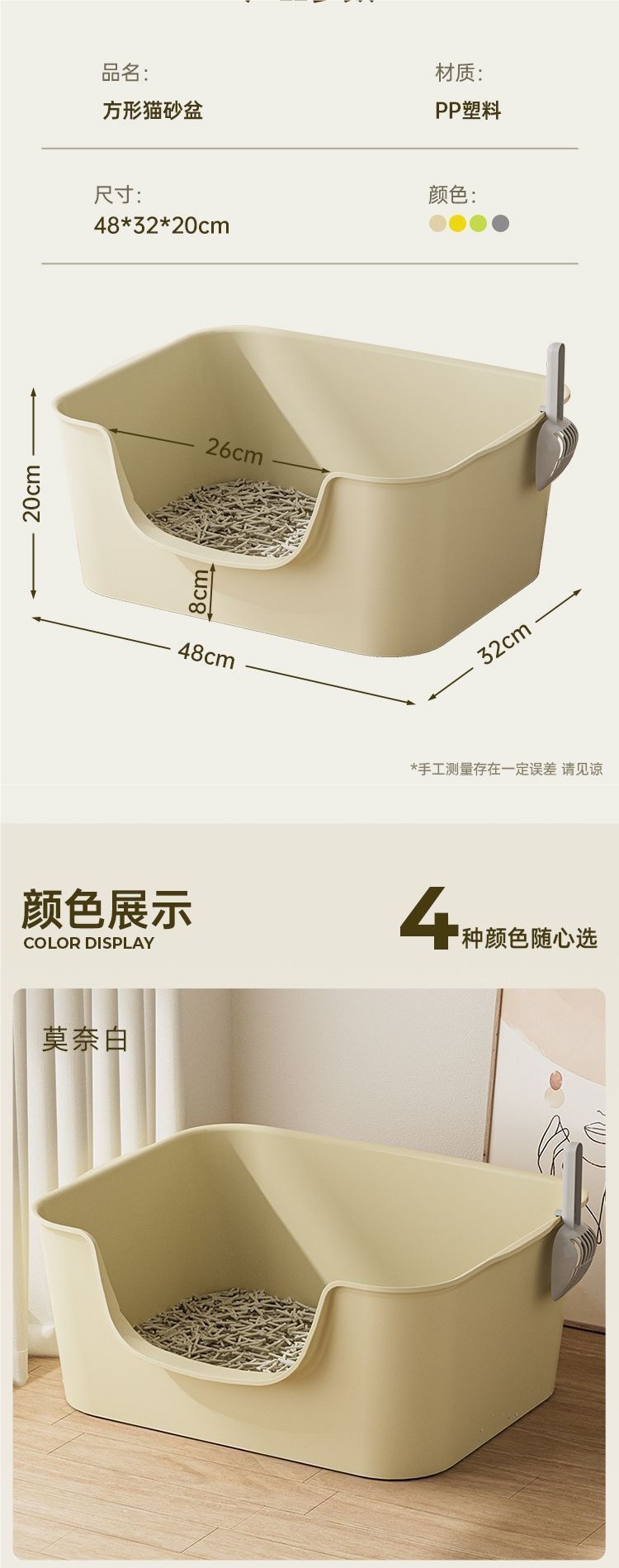 • 대형 고양이 배변 상자 15kg [따뜻한 살구] 삽 포함