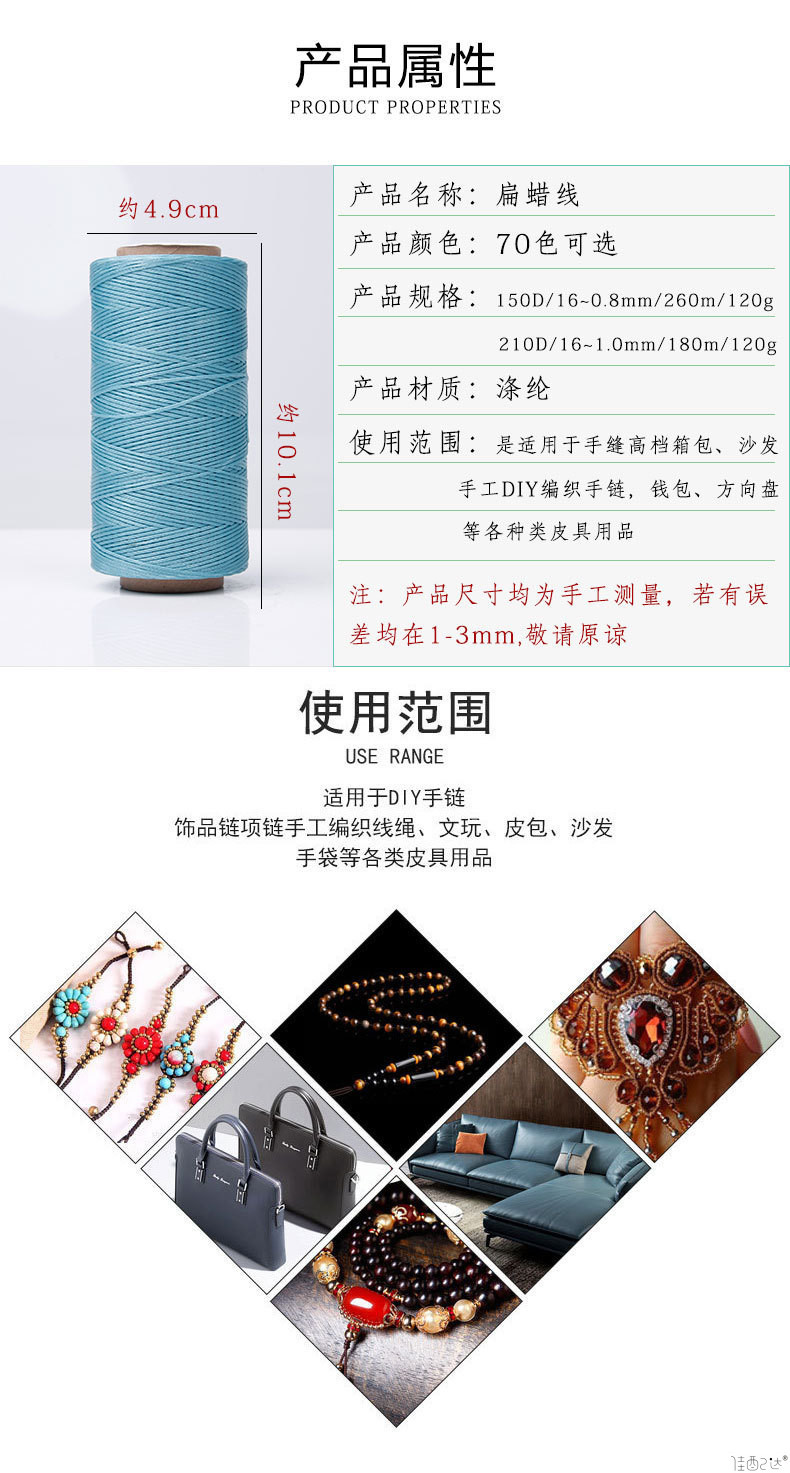 150d 260 m 남미 플랫 왁스 라인 0.8 왁스 로프 폴리 에스터 손으로 꿰매는 가죽 diy 왁스 로프 비딩 라인 2