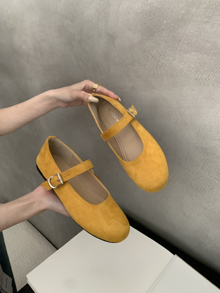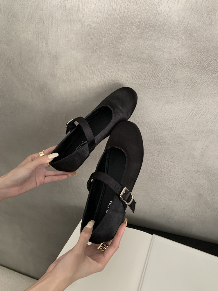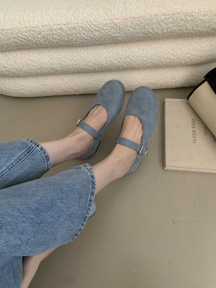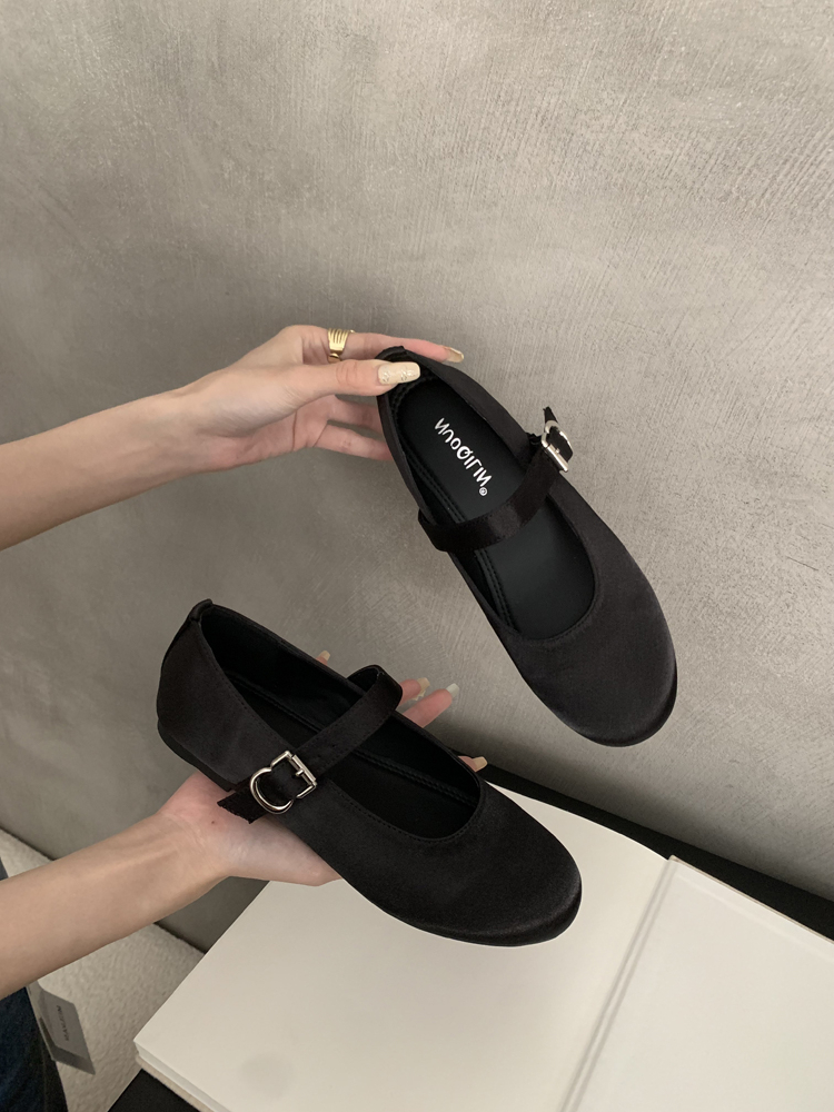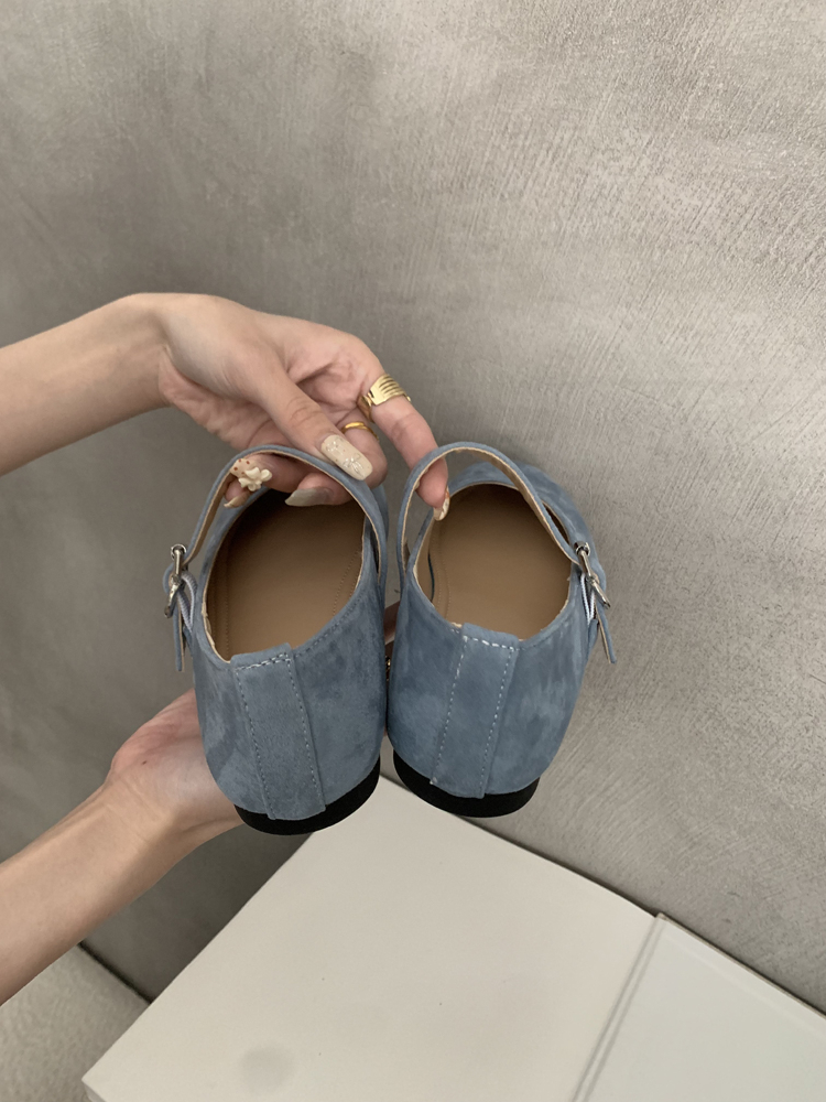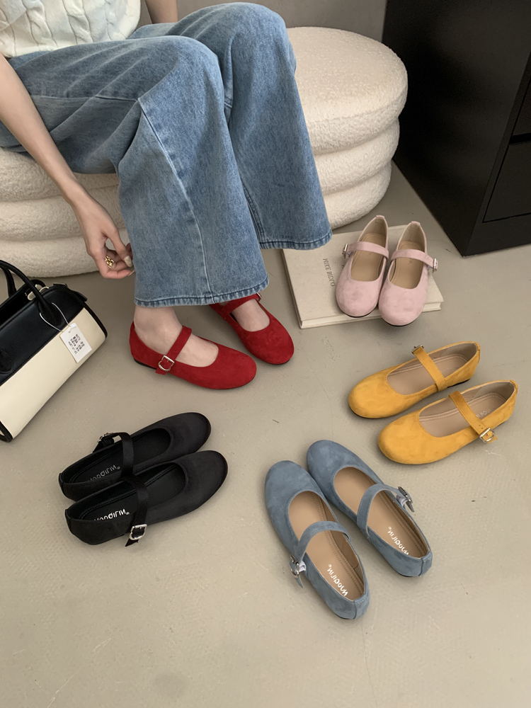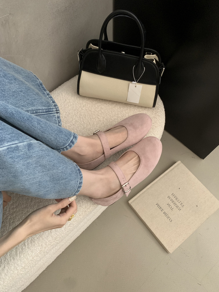 레트로 니치 컬러 분할 캐릭터 메리 제인 신발 2025 봄 새 얕은 입 라운드 발가락 한국식 플랫 밀크 신발스토어 가기
