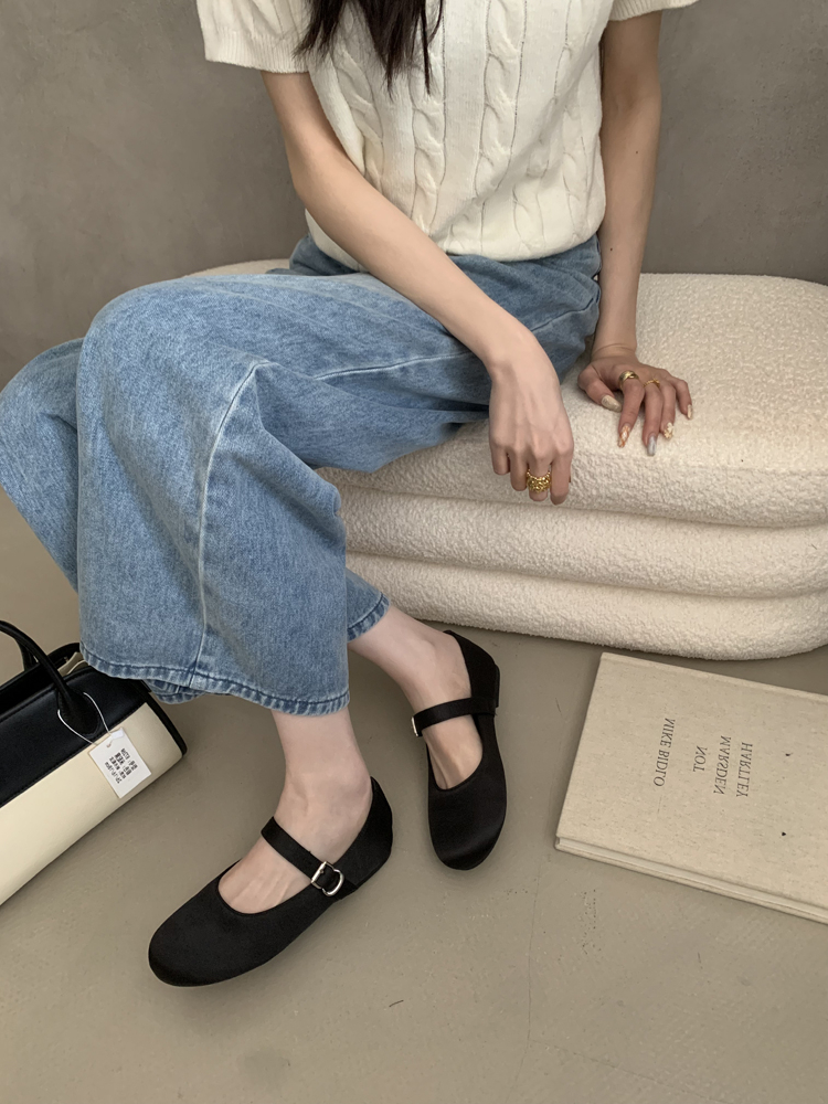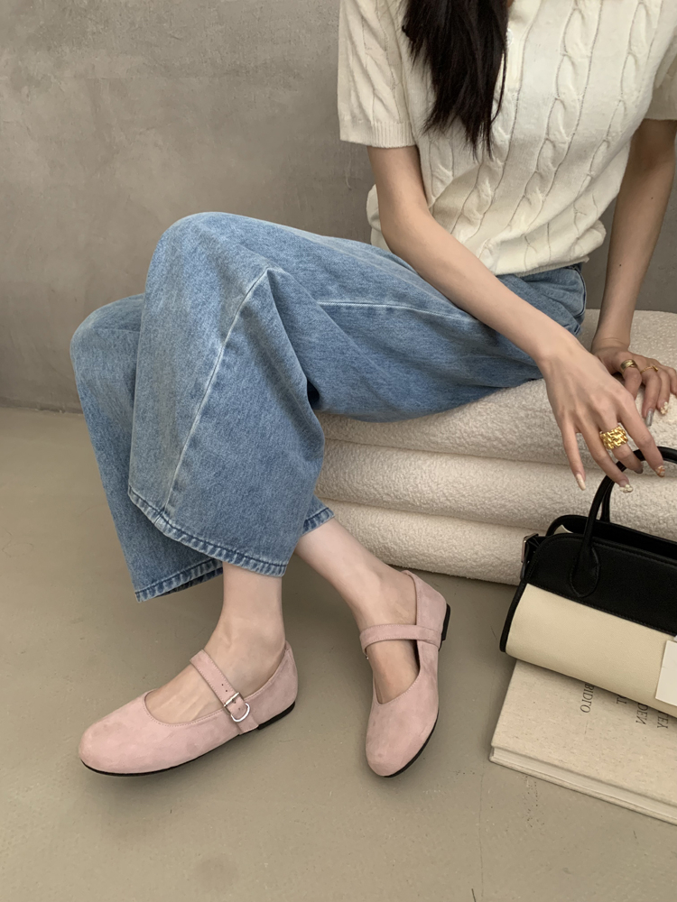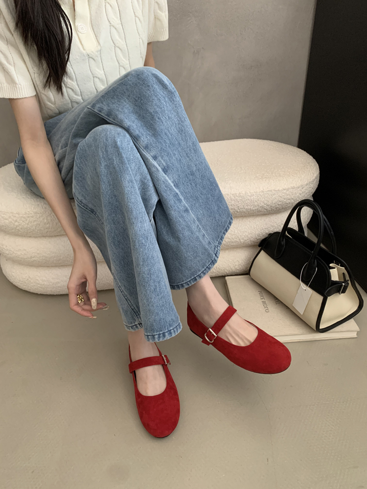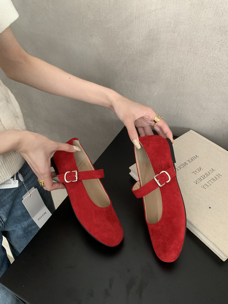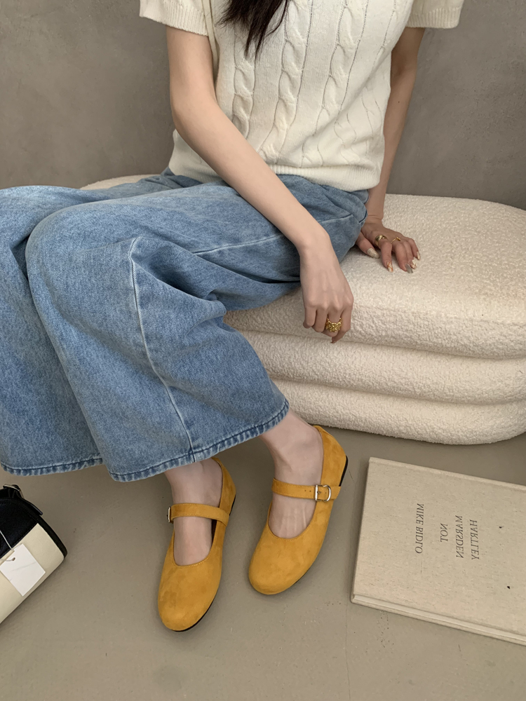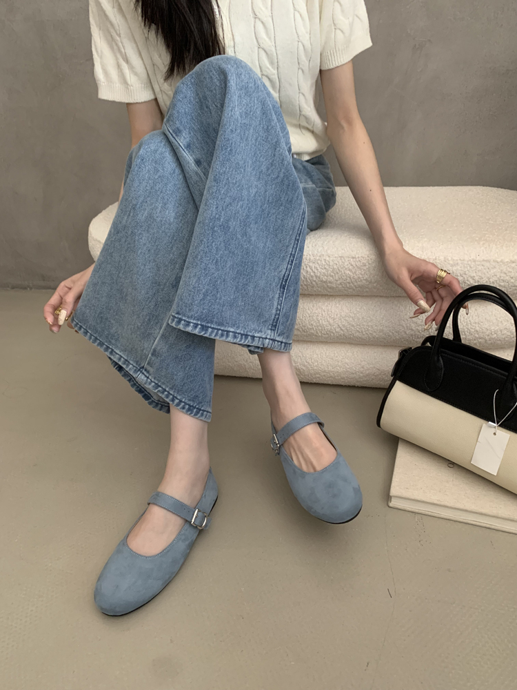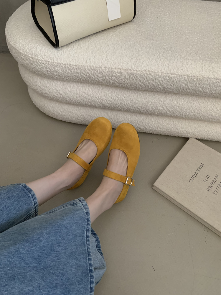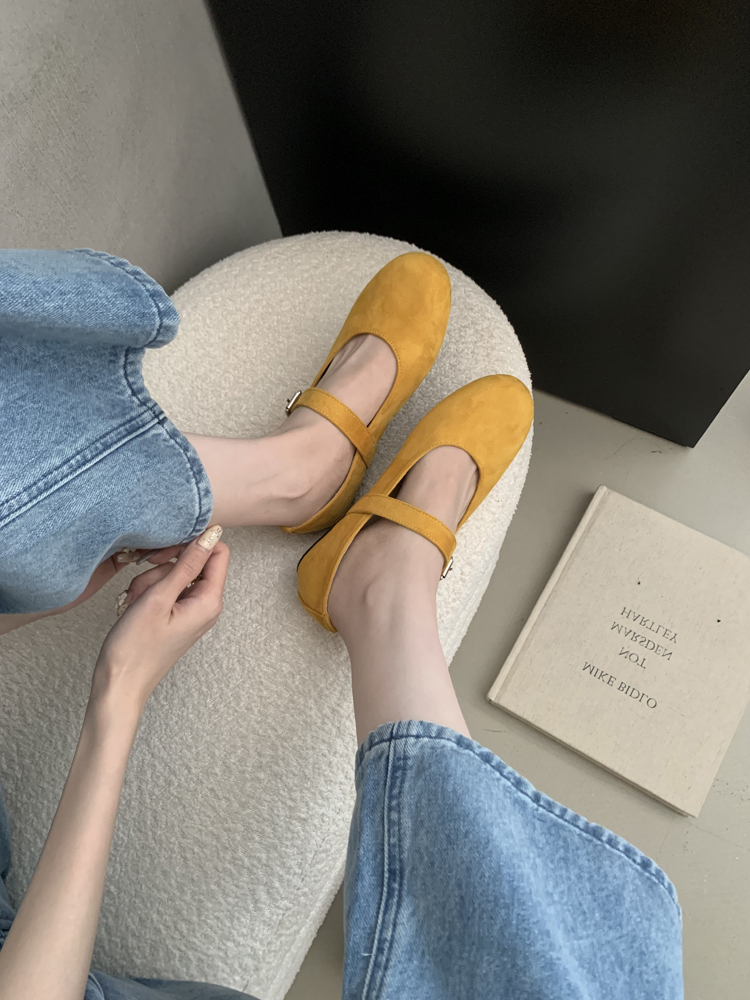 레트로 니치 컬러 분할 캐릭터 메리 제인 신발 2025 봄 새 얕은 입 라운드 발가락 한국식 플랫 밀크 신발스토어 가기
