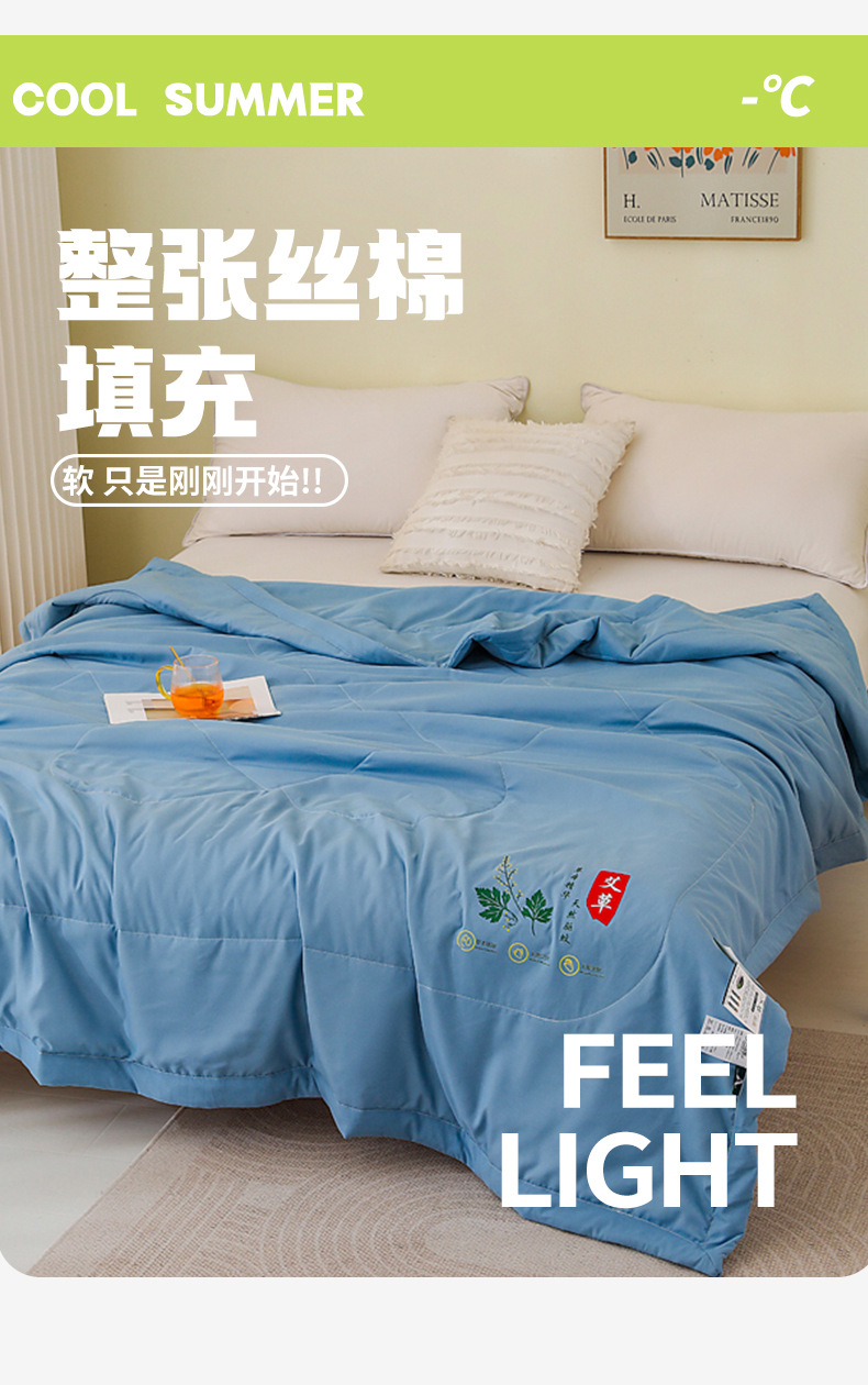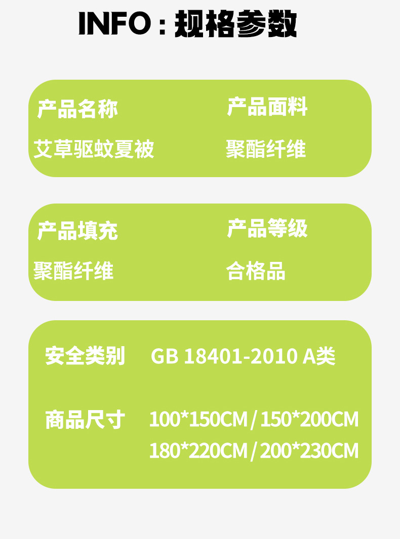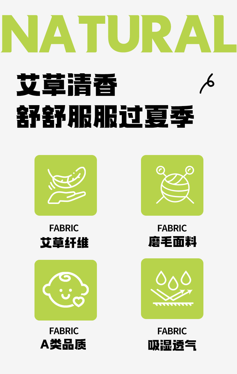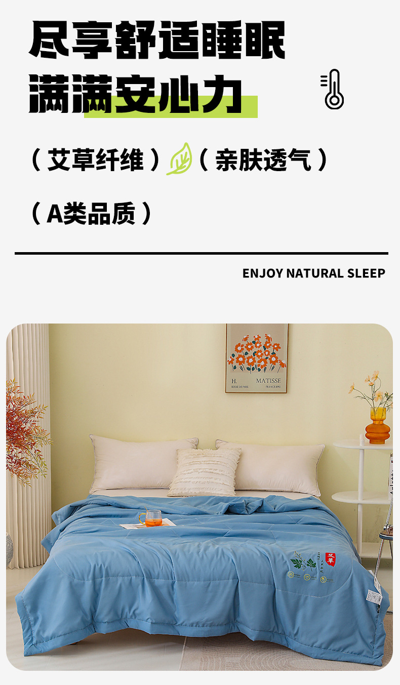 A类品质磨毛亲肤布料 活性印染 健康环保不褪色 混合了艾草纤维 透着淡淡艾草香味 越揉搓香味越浓 天然驱蚊助眠 亲肤透气 舒舒服服过夏季