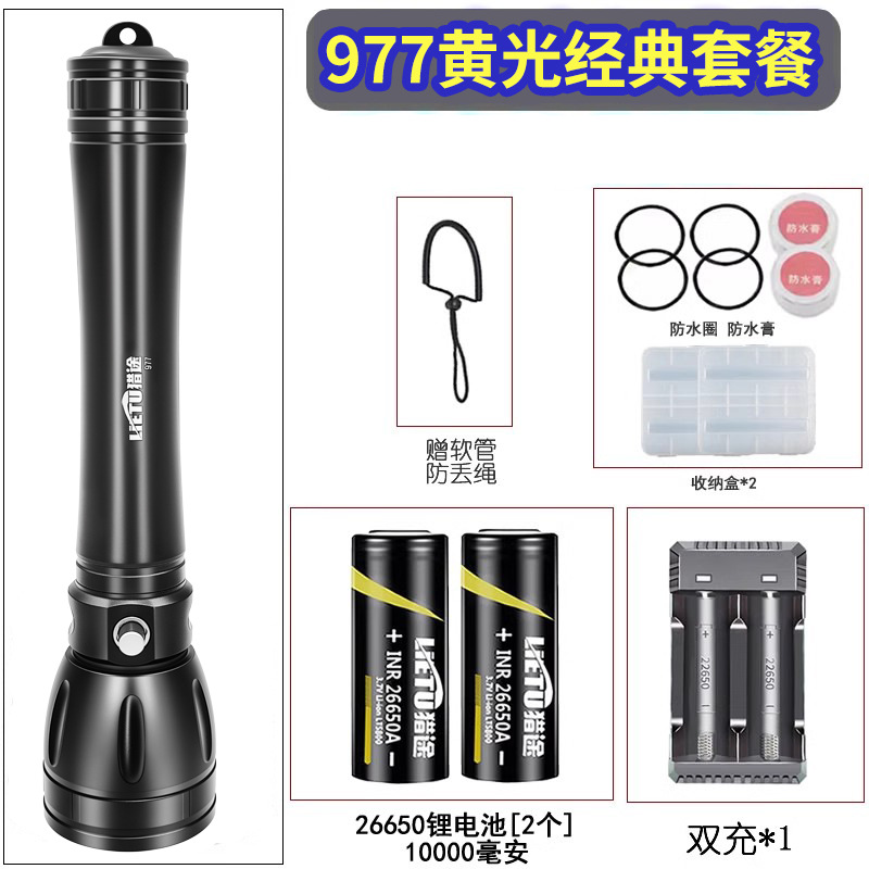 • 977 노란색 빛 쿼드 코어 클래식 패키지 [26650 배터리*2+듀얼 충전]