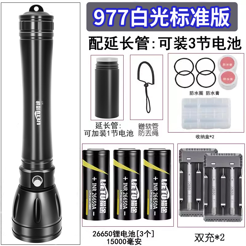 • 977 백색광 쿼드 코어 표준 패키지 [26650 배터리*3+듀얼 충전*2]