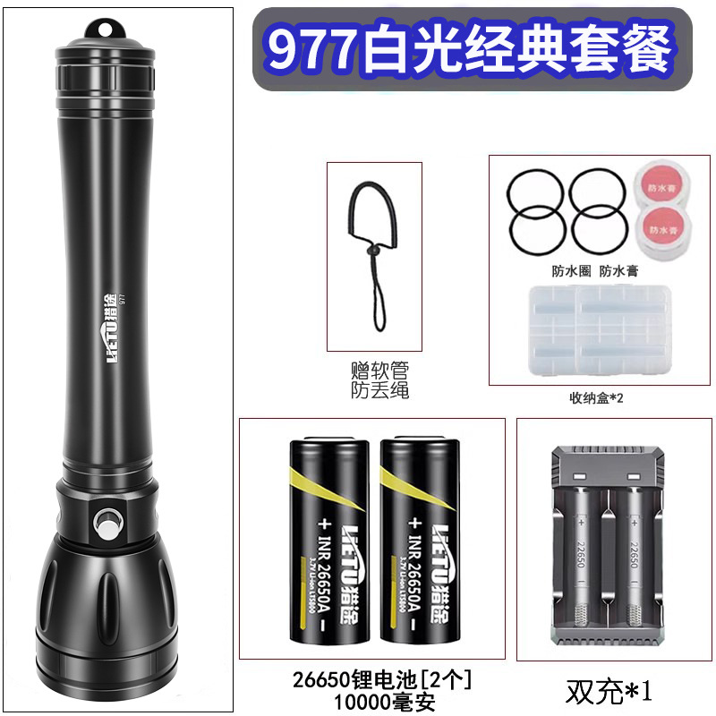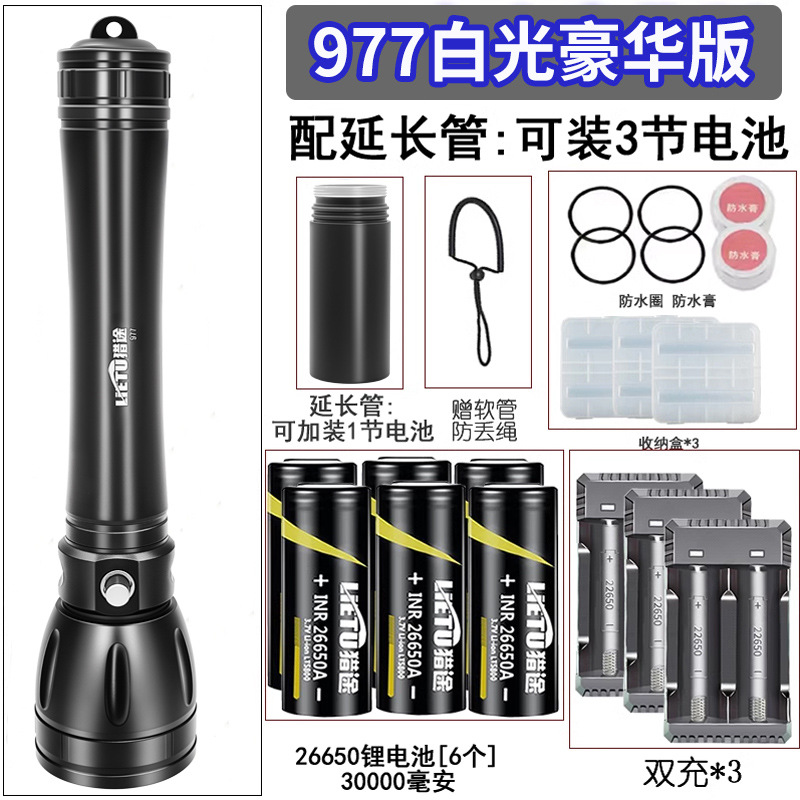 사냥 977 다이빙 손전등 전문 강한 빛 P90 슈퍼 밝은 장거리 26650 야간 다이빙 특수 수중 조명