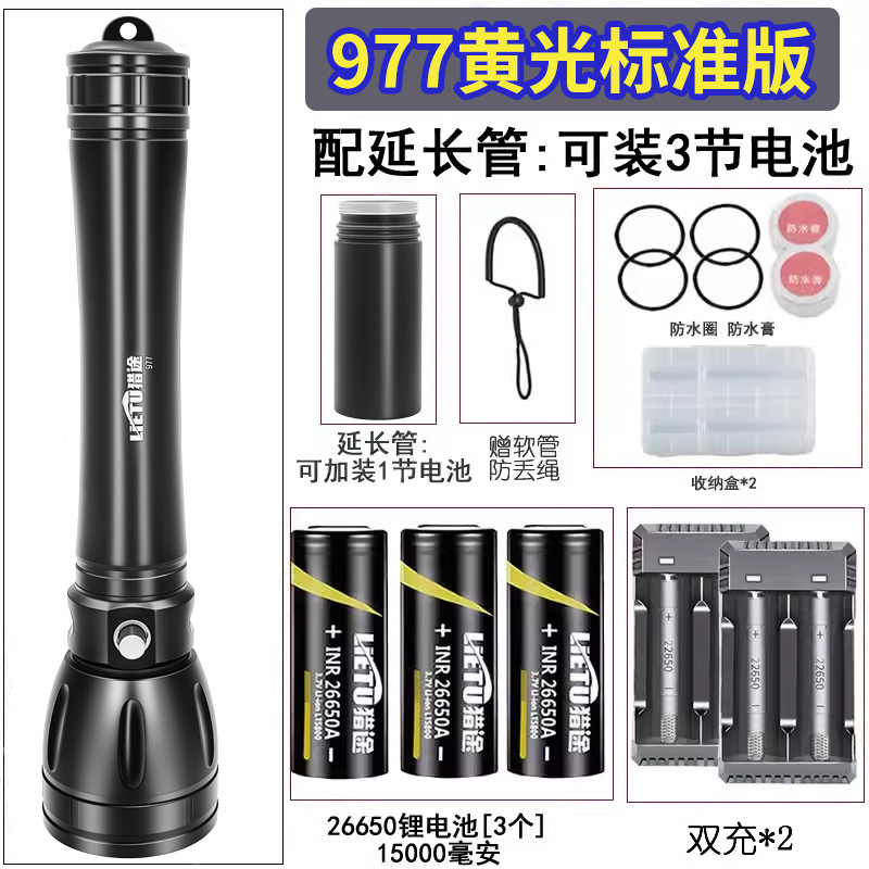 • 977 노란색 빛 쿼드 코어 표준 패키지 [26650 배터리*3+듀얼 충전*2]